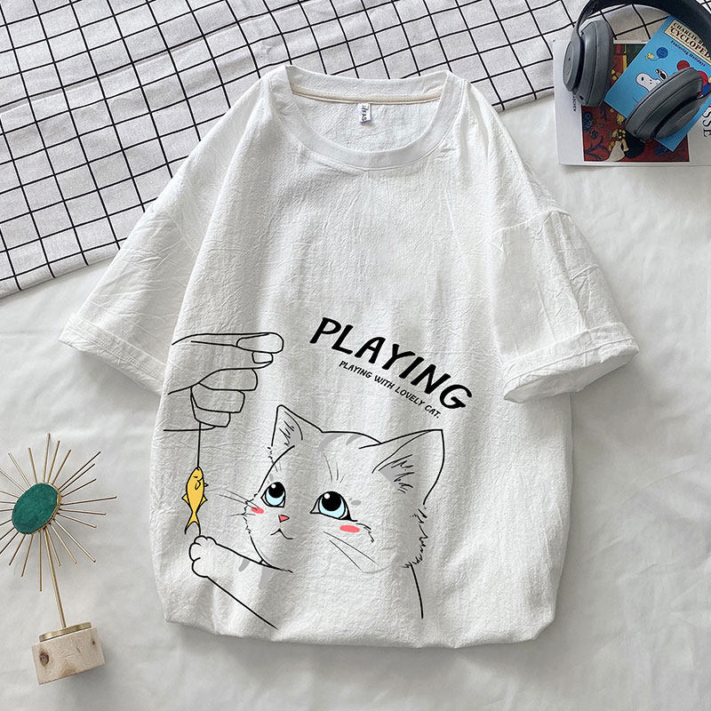 Tide, летняя трендовая футболка с коротким рукавом, большой размер, оверсайз, из хлопка и льна