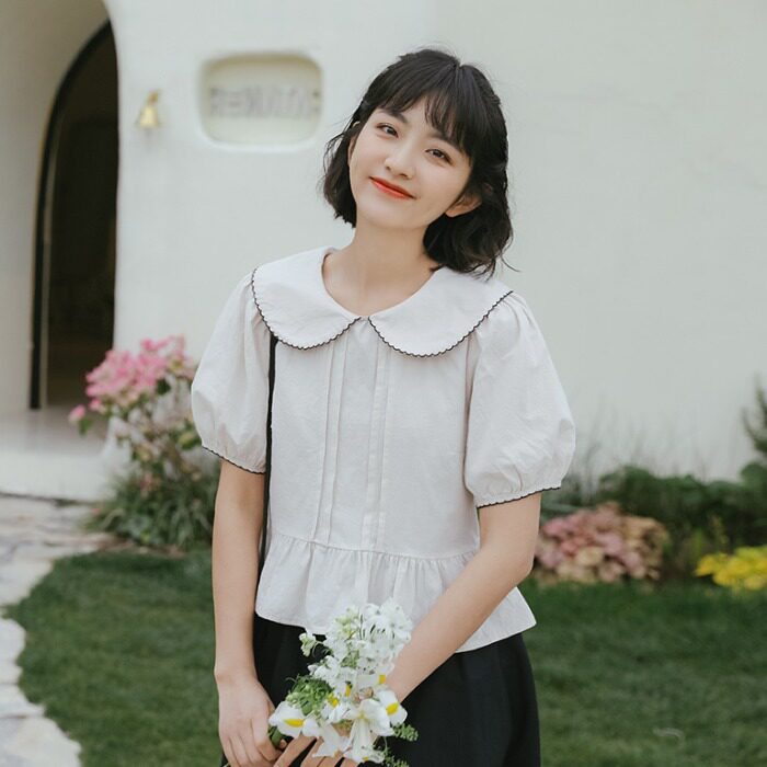 Рубашка, летняя белая короткая универсальная кукла, рукава фонарики, 2021 года, кукольный воротник