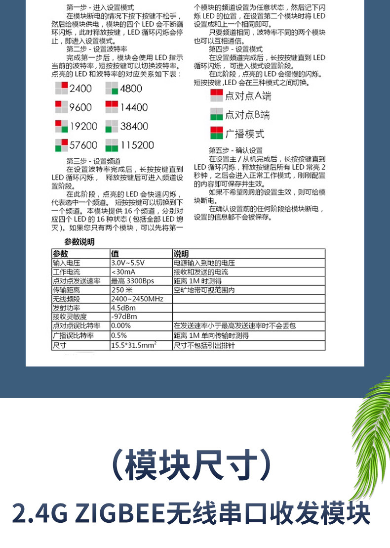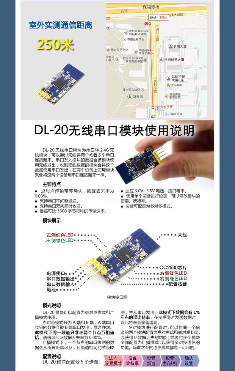 2.4g Zigbee беспроводной последовательный порт приема модуля CC2530 Прозрачная точка -точка -точка трансляции TTL TTL