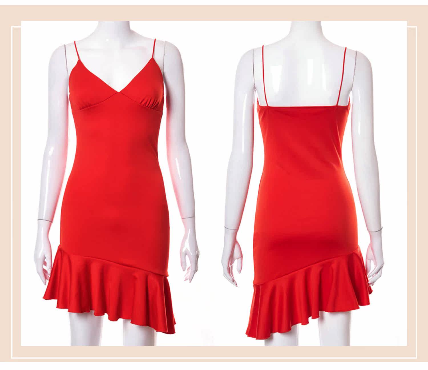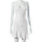 Дизайнерская брендовая мини-юбка, эластичное платье-комбинация, тренд сезона, V-образный вырез, европейский стиль, в обтяжку