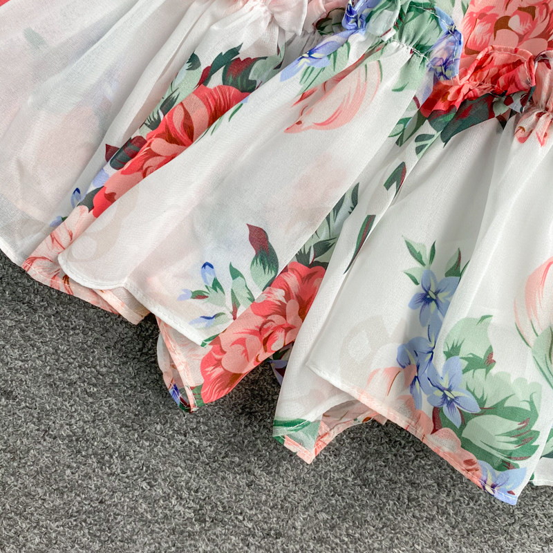 Шифоновый комбинезон, штаны, шорты, колготки, открытые плечи, шифоновый с принтом, свободный крой