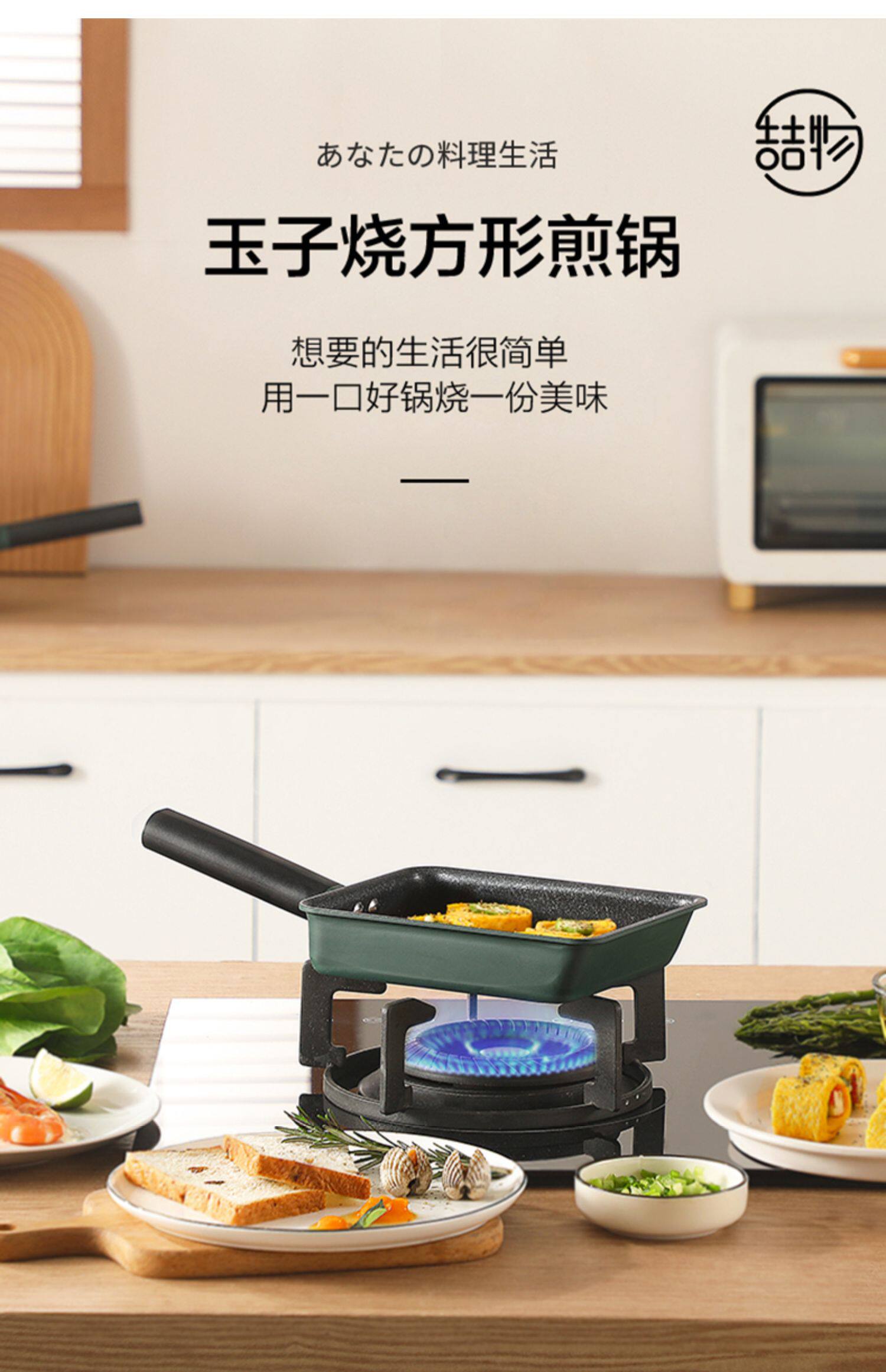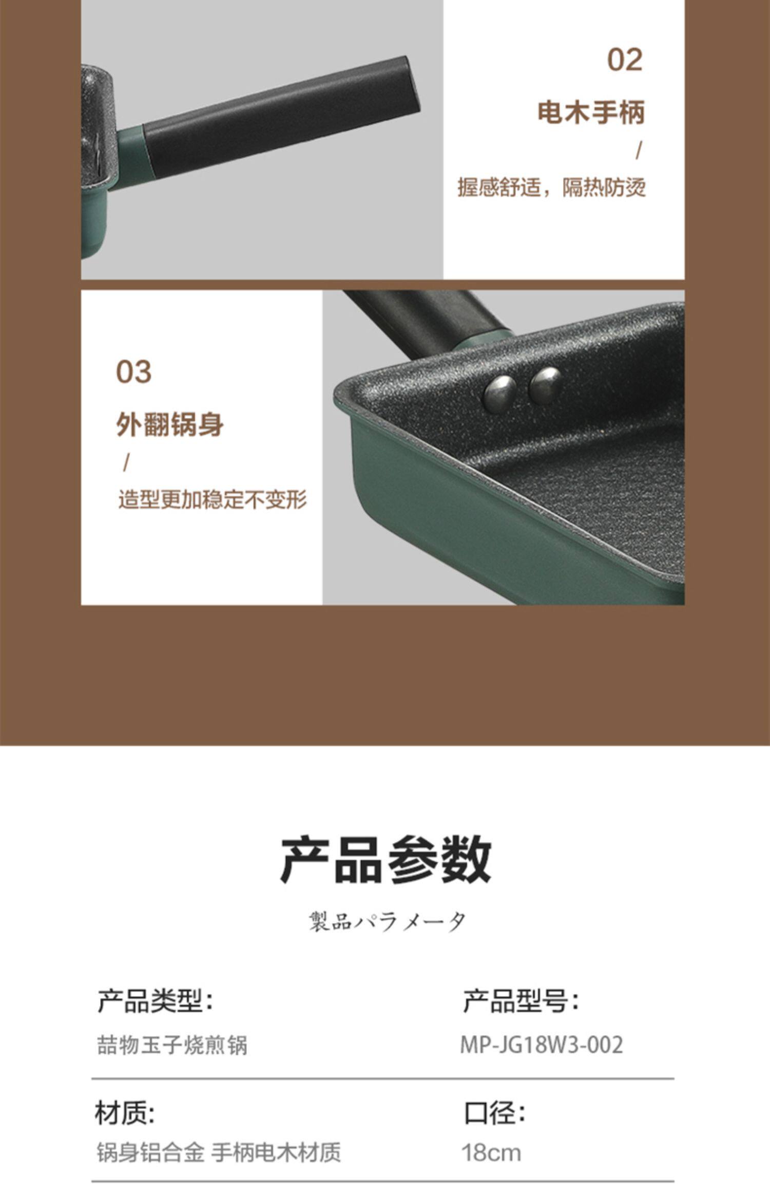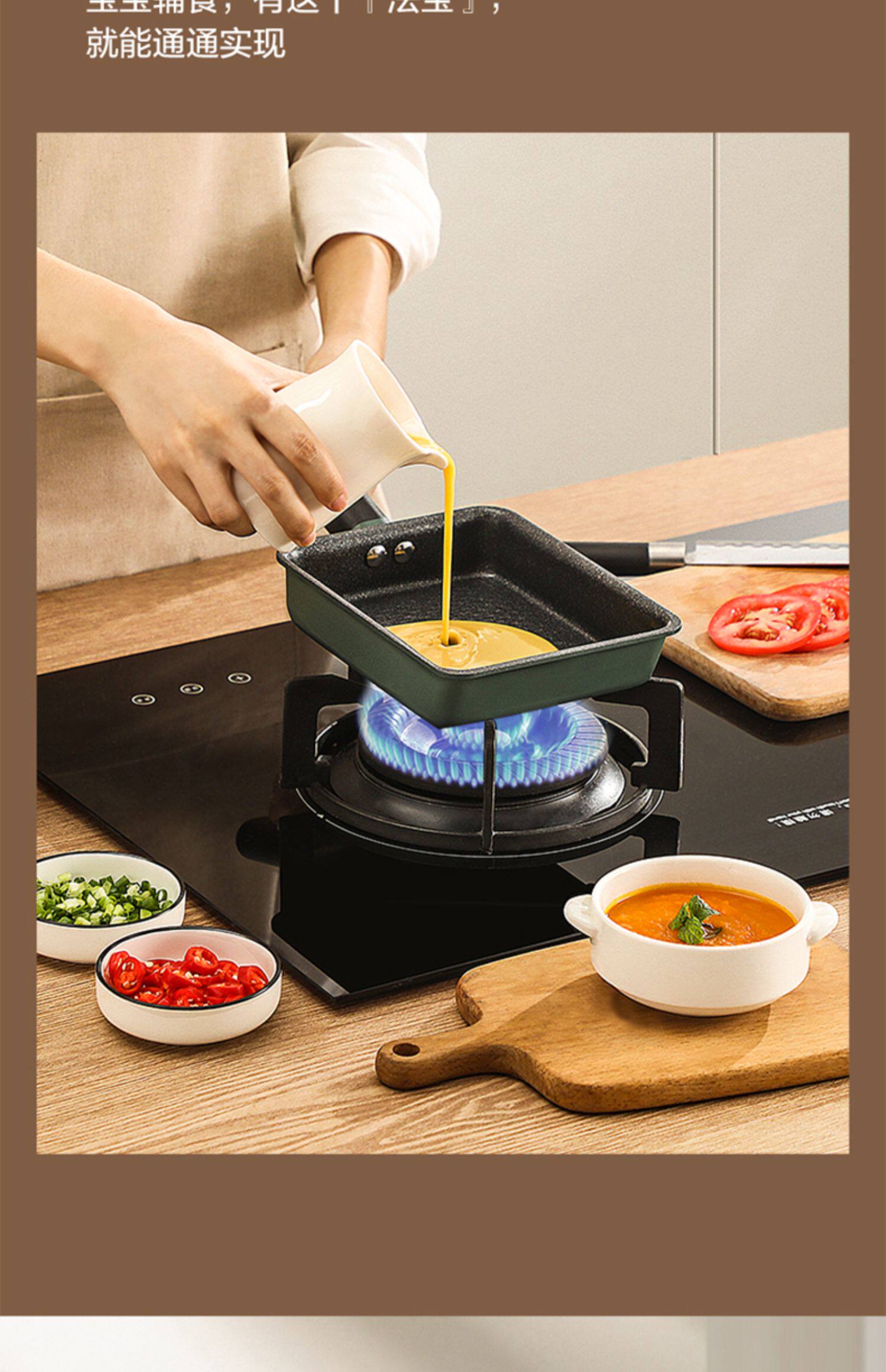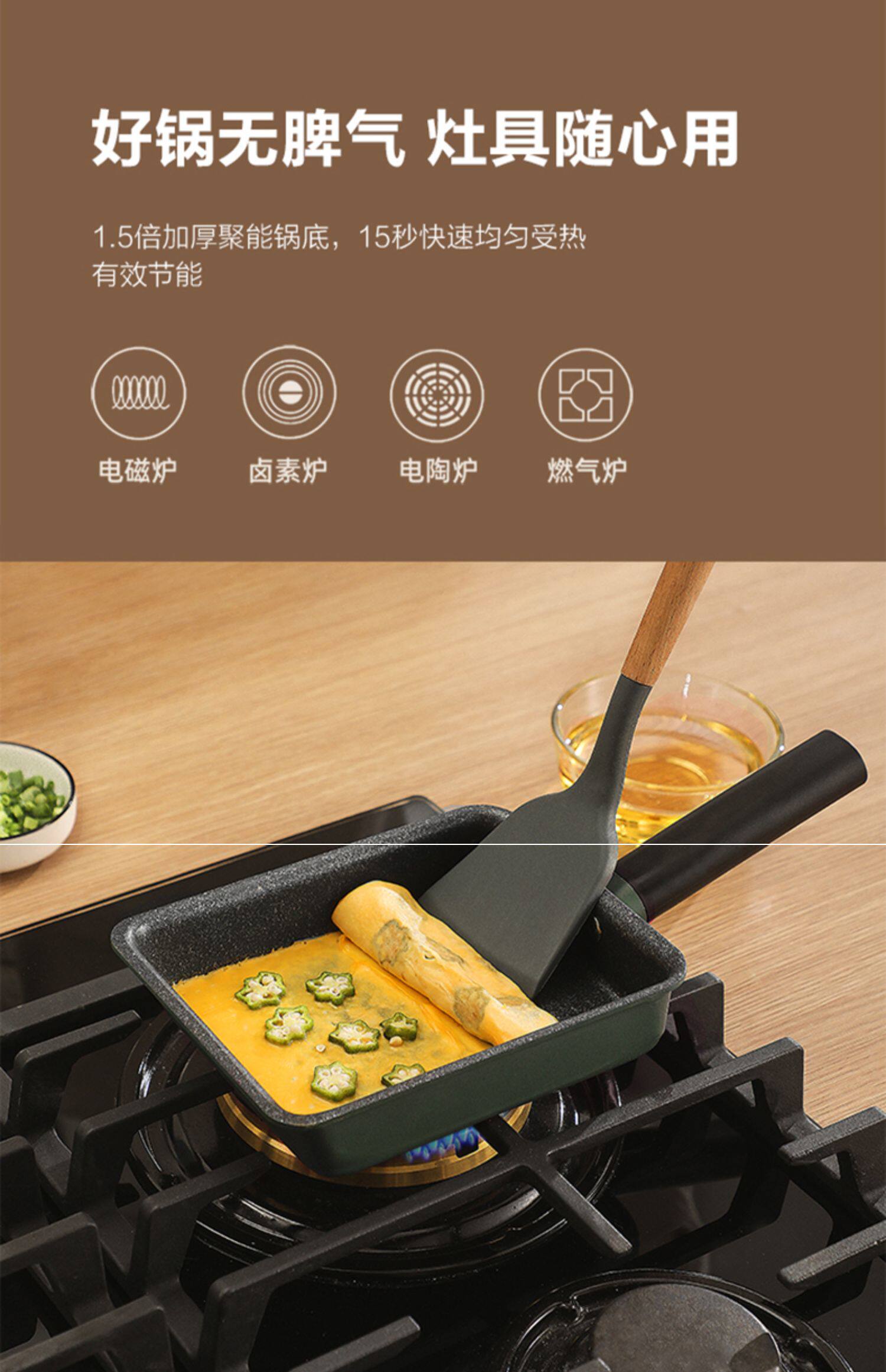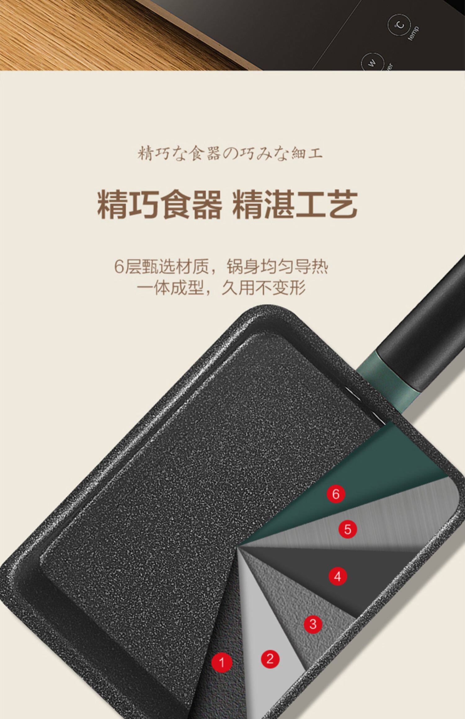 Midea yizi кипятить японскую квадратную квадратную мебель для простых горшечных горшечников, болисох, горшок, рисовый блин, толстые яйца, покрытие дополнительная пища, небольшая жареная плита