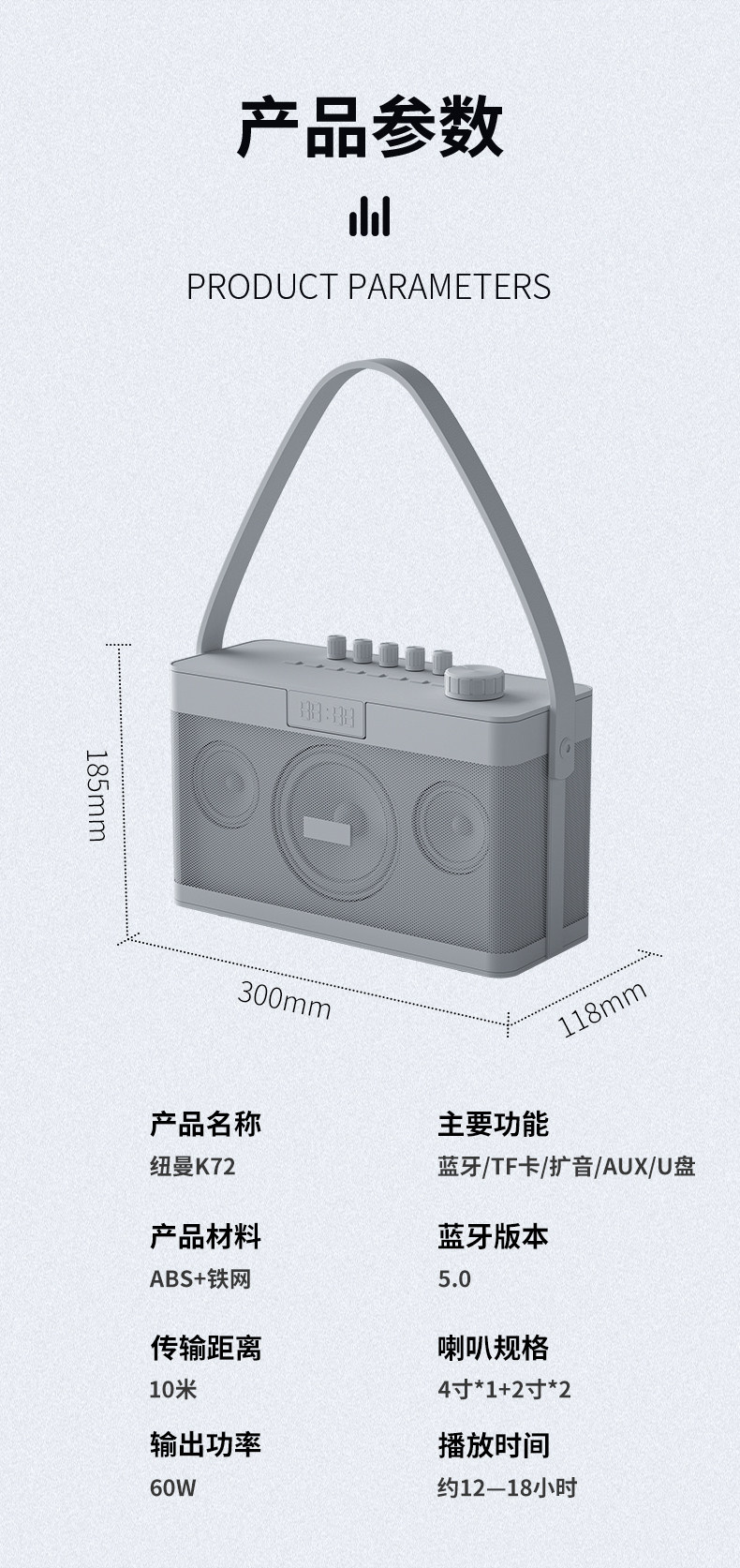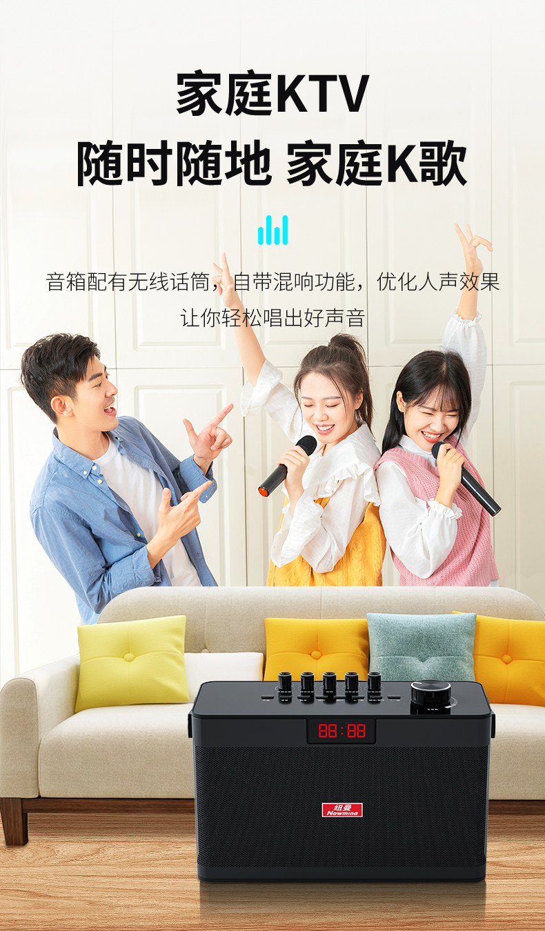 纽曼 Портативный беспроводной микрофон, дорожные музыкальные инструменты, колонки, bluetooth, 300W, высокая мощность