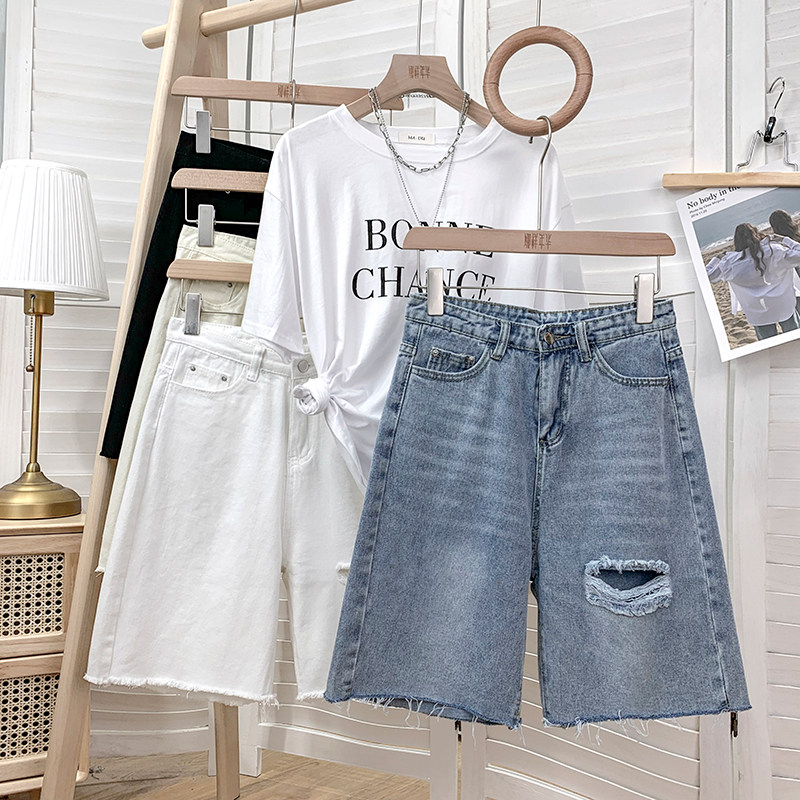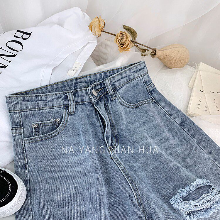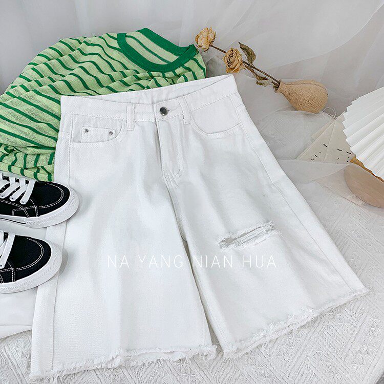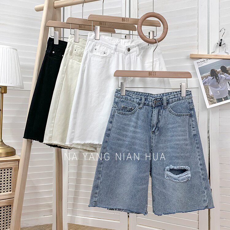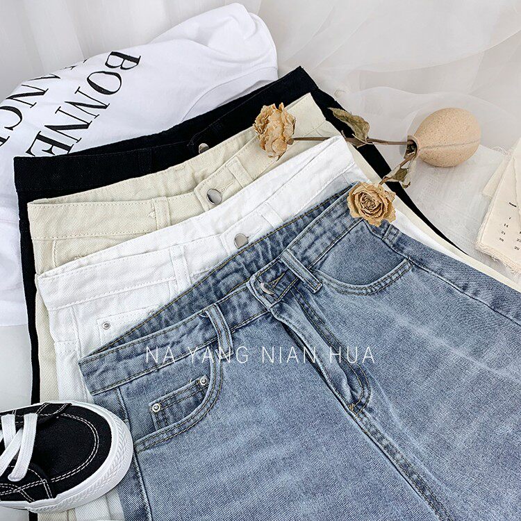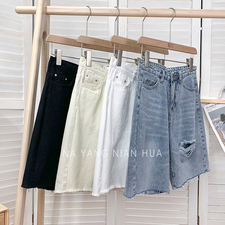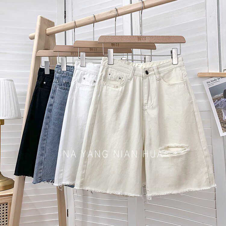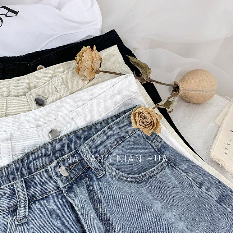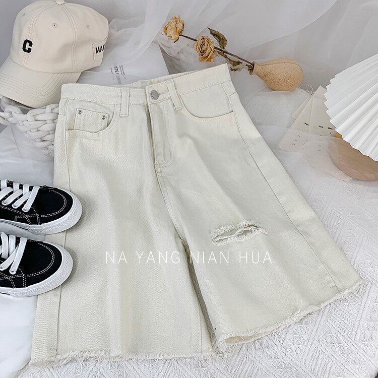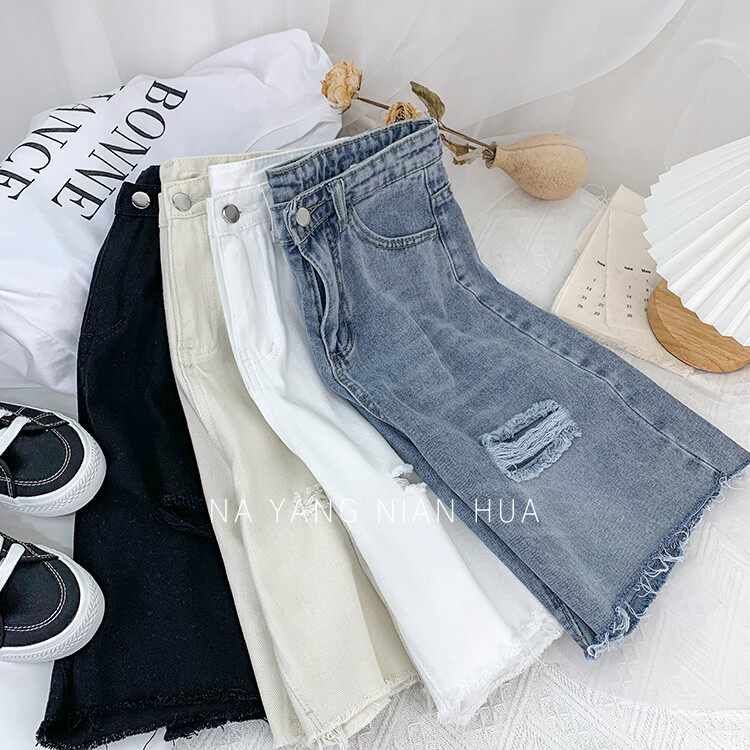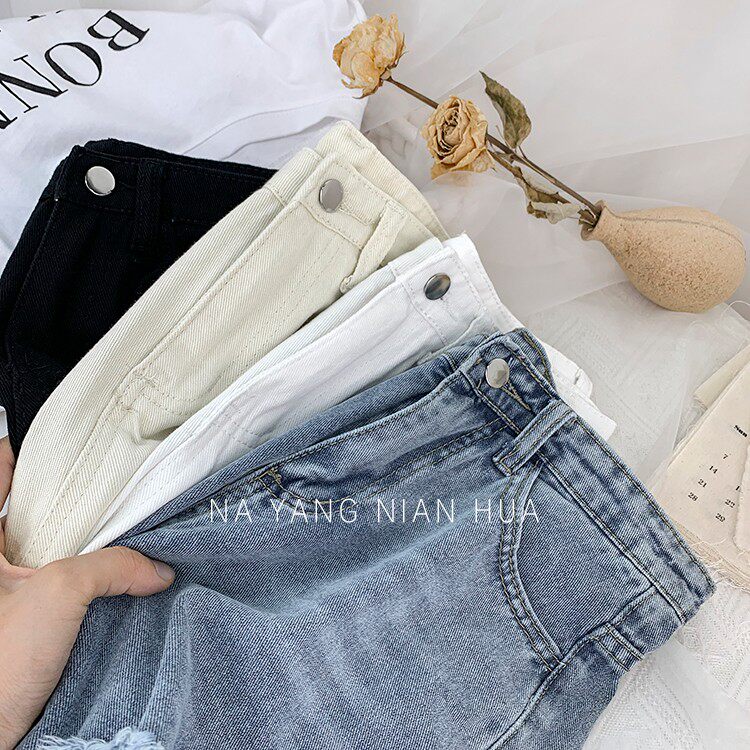 Джинсовая юбка, шорты, белые брендовые штаны для отдыха, высокая талия, свободный прямой крой