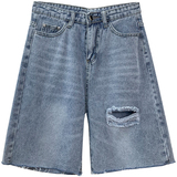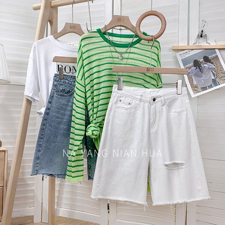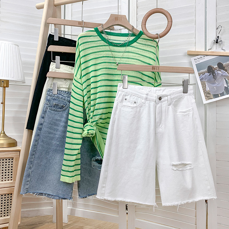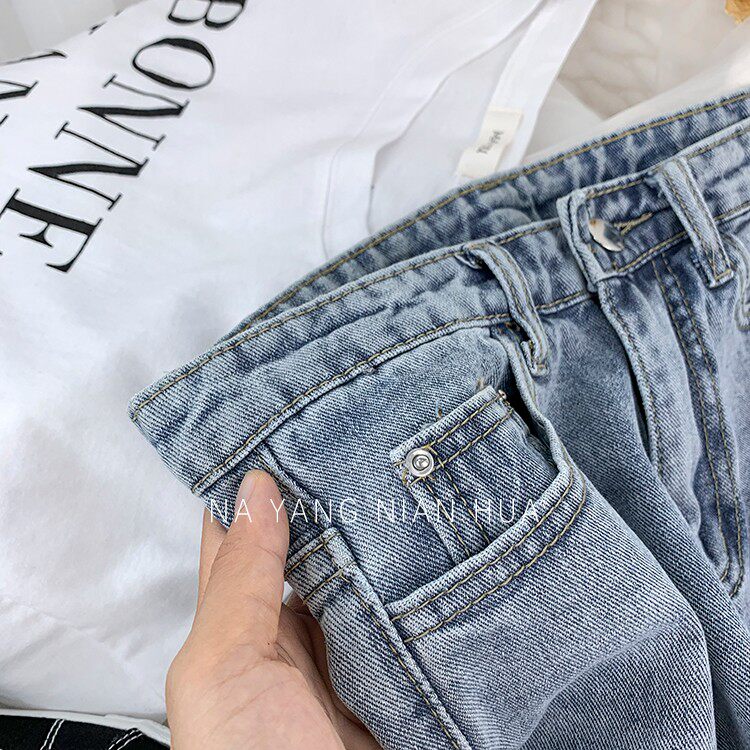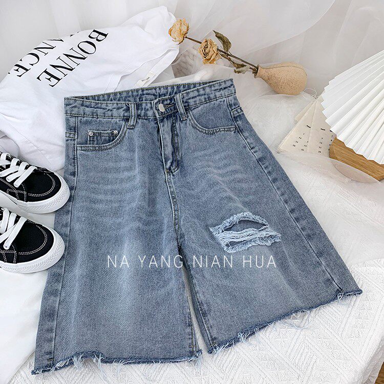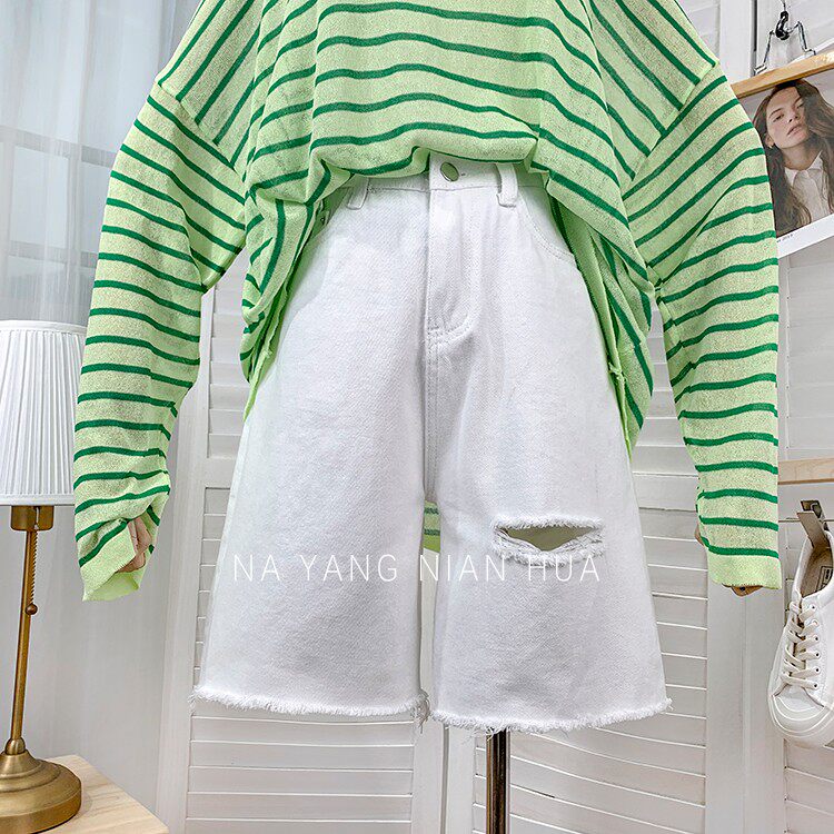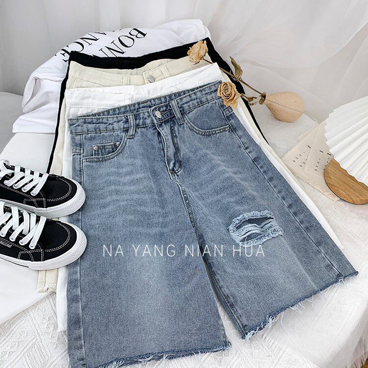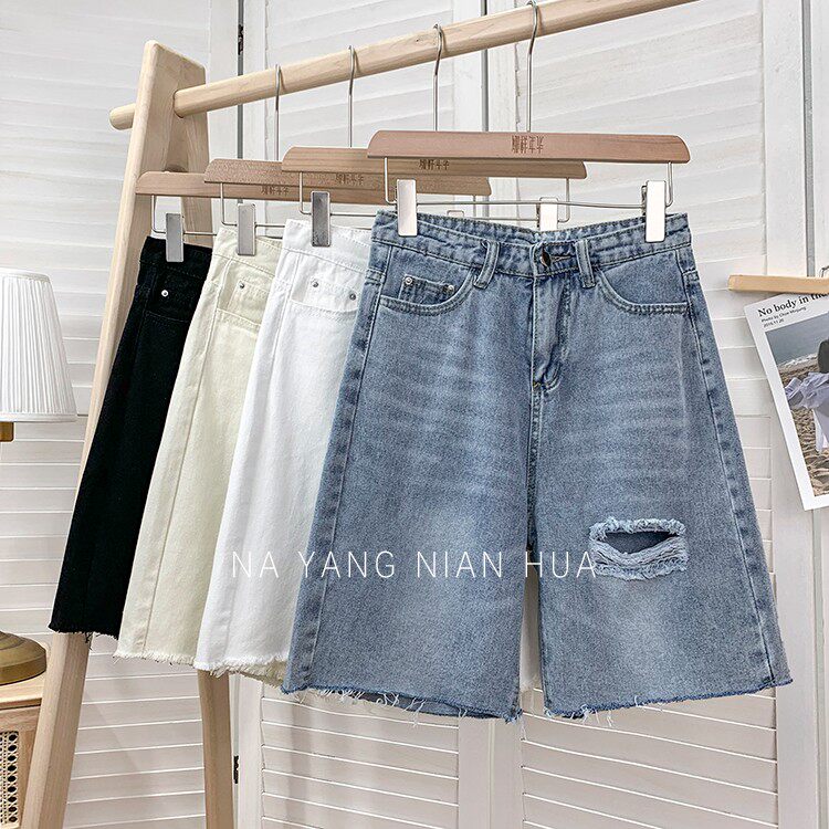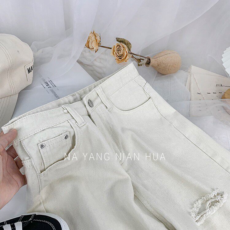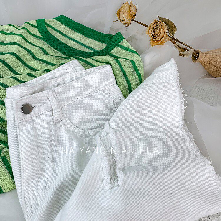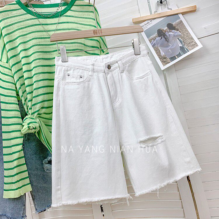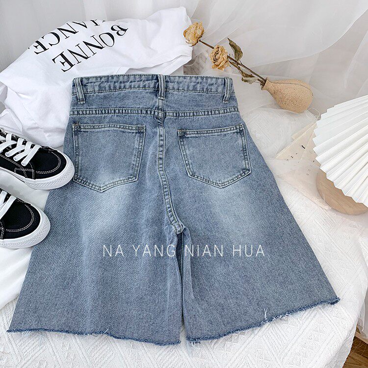 Джинсовая юбка, шорты, белые брендовые штаны для отдыха, высокая талия, свободный прямой крой