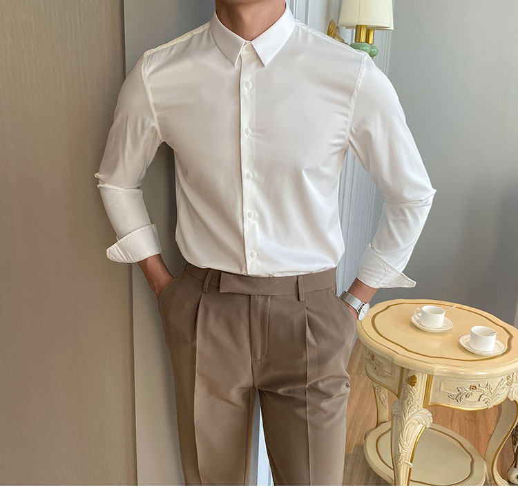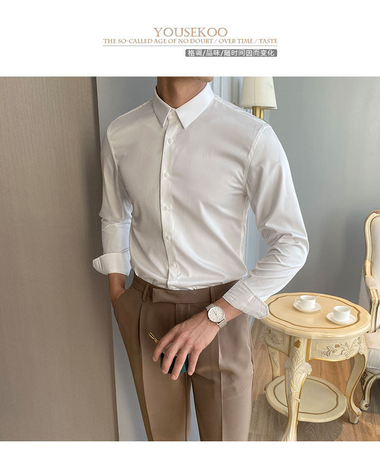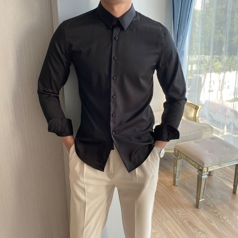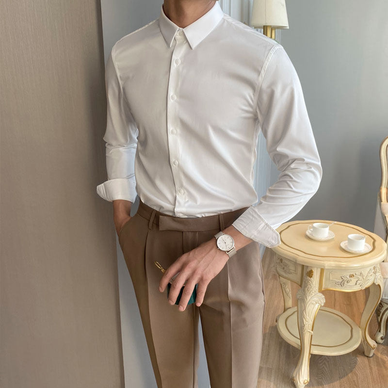 Летняя тонкая приталенная эластичная трендовая рубашка, большой размер, в корейском стиле