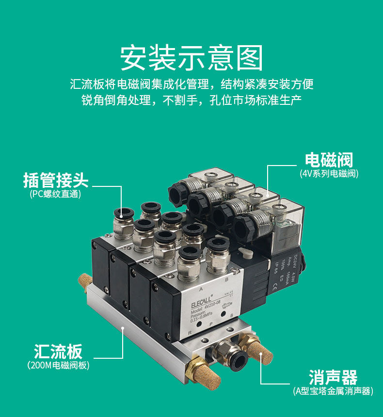 Eliko Pneumatic 4V210-08 Соленоидные сходящиеся клапаны платы клапана 200M-4F Группа выпускных клапанов.