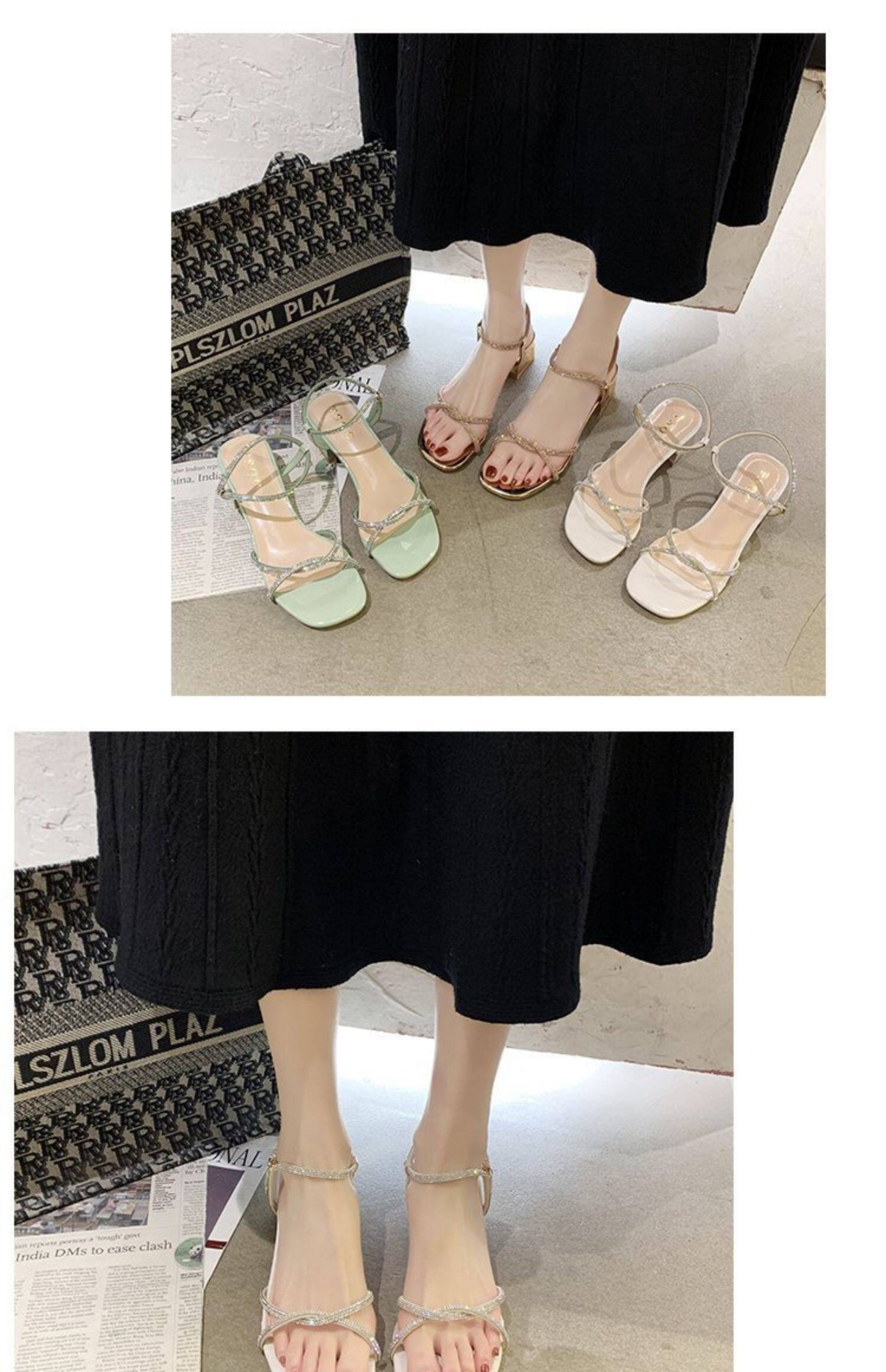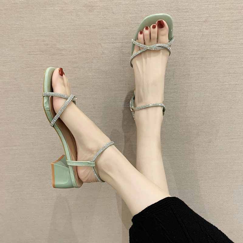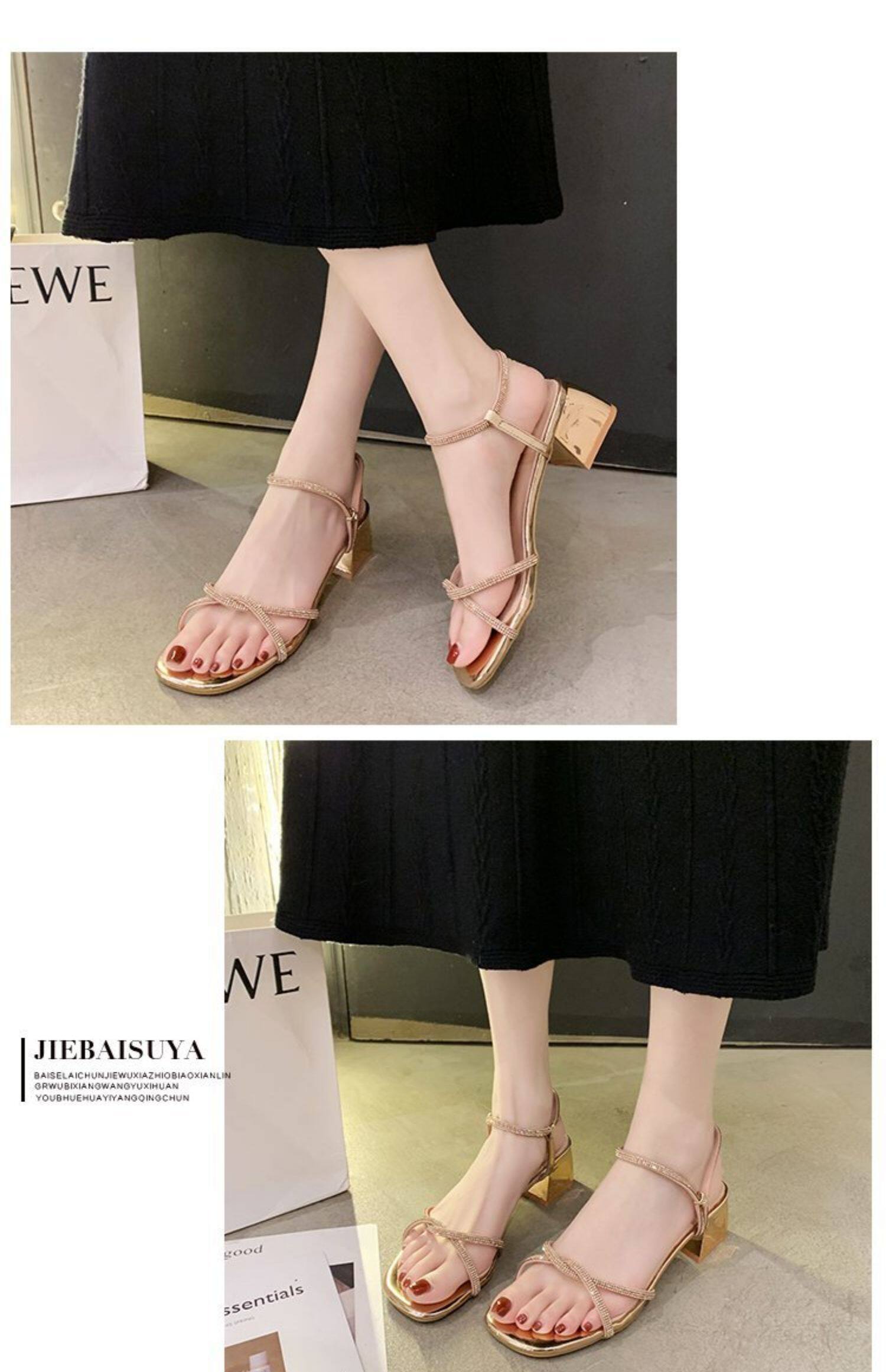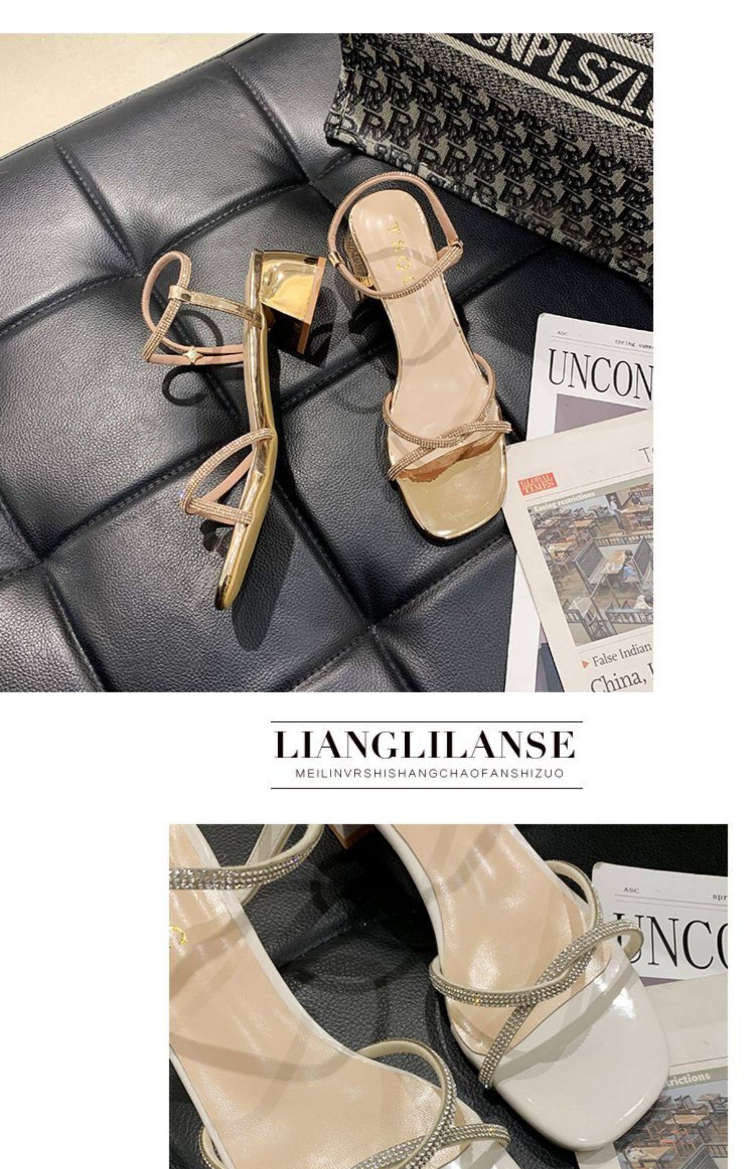 Сандалии, универсальная обувь на высоком каблуке, подходит для студента, яркий броский стиль, коллекция 2021