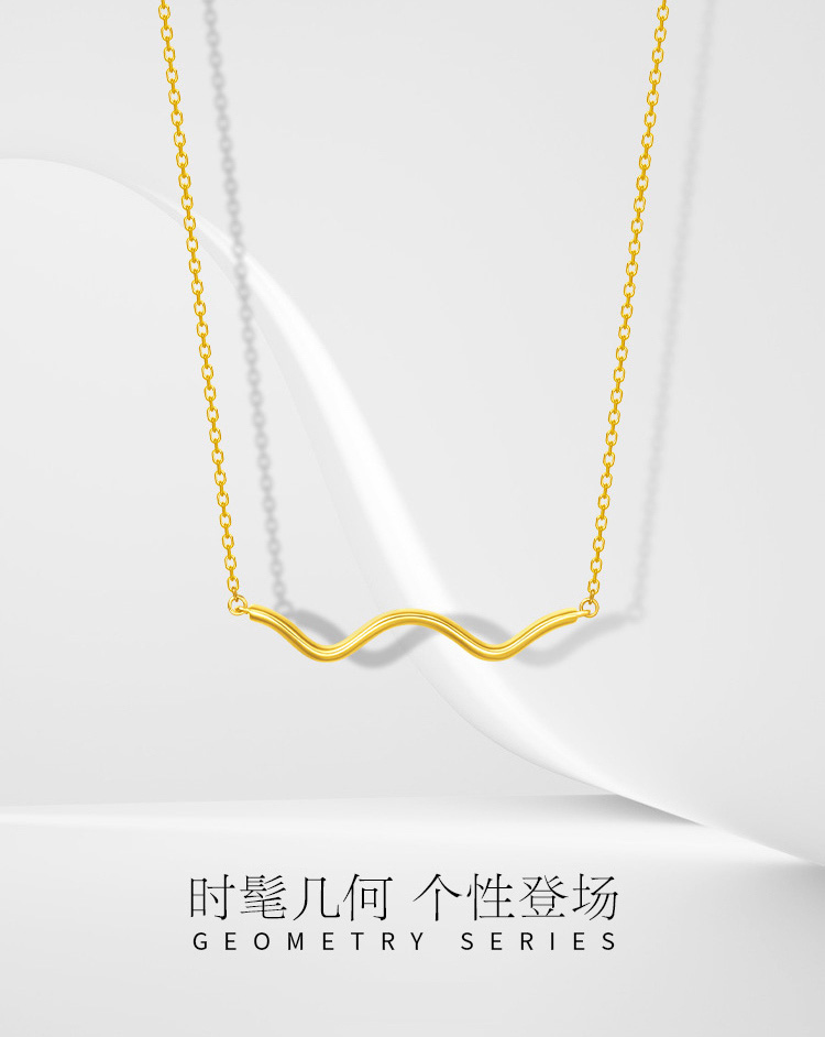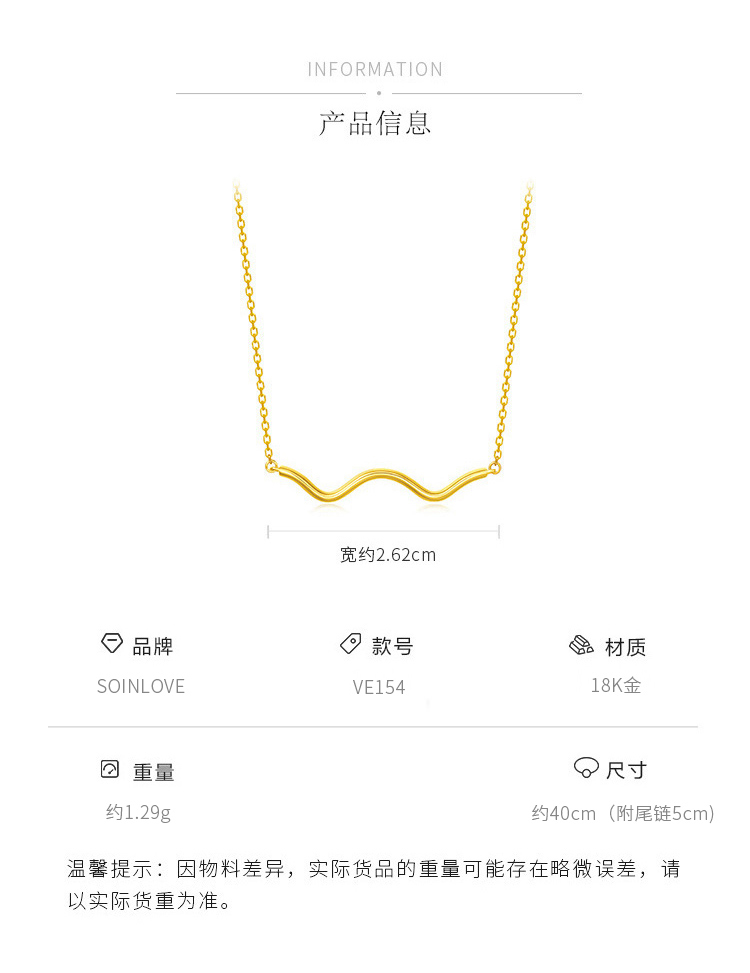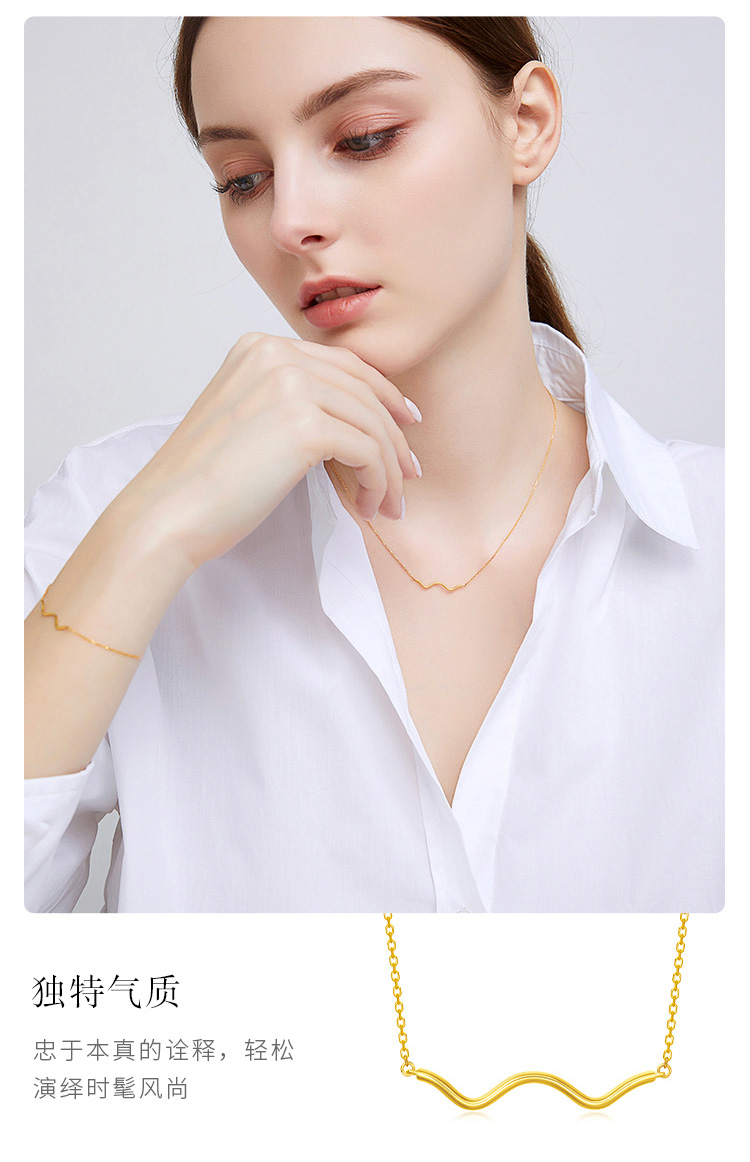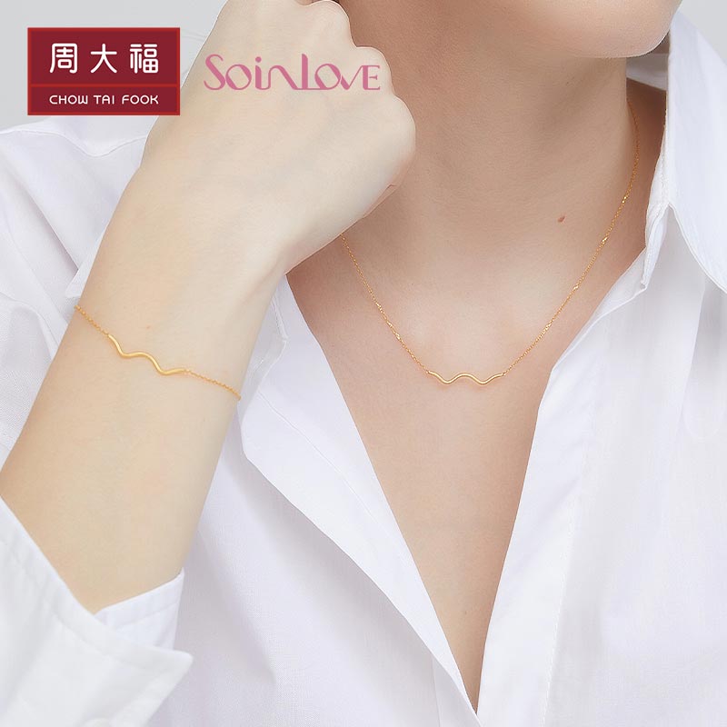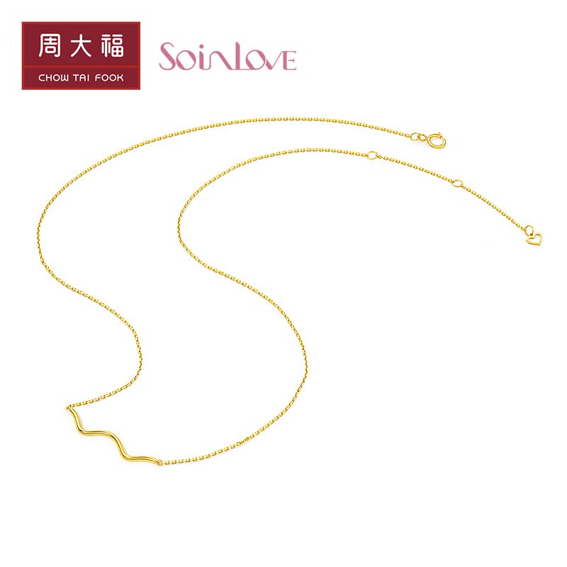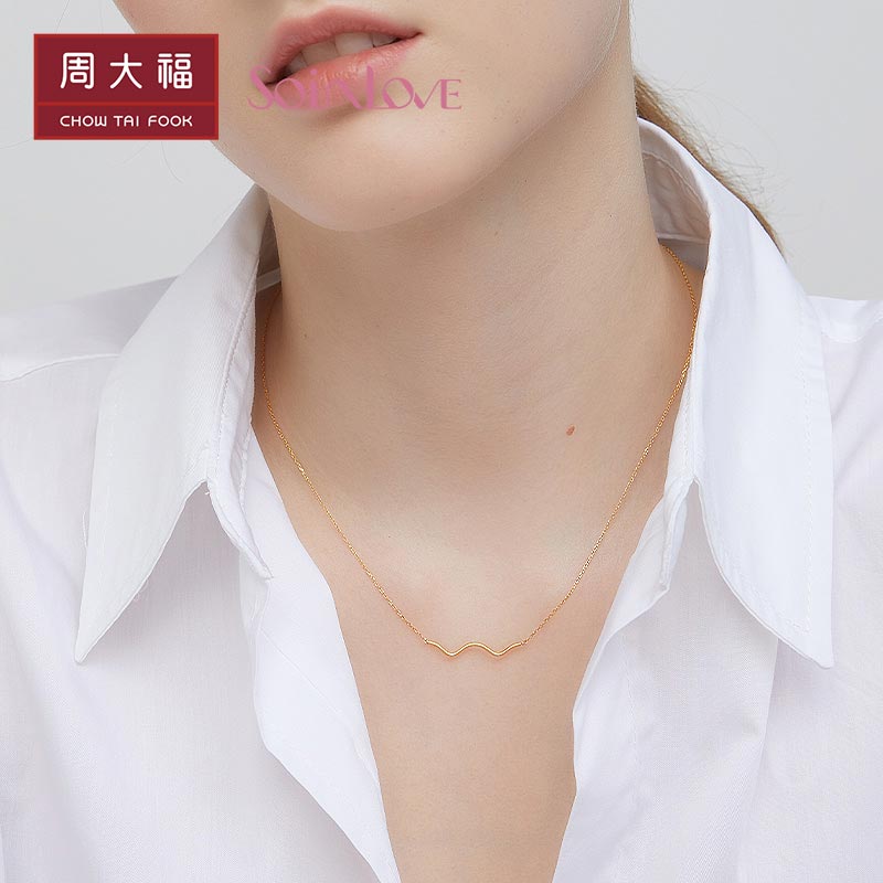 周大福 Минималистичное брендовое ожерелье, цепочка до ключиц, золото 750 пробы