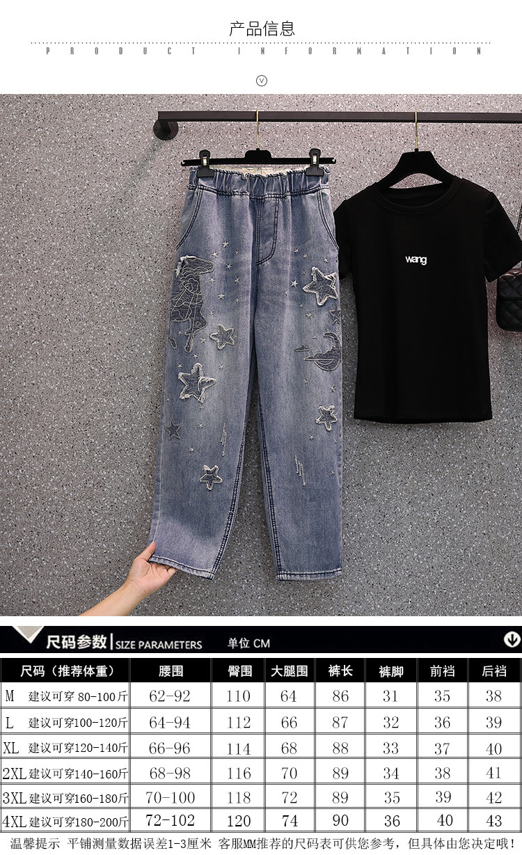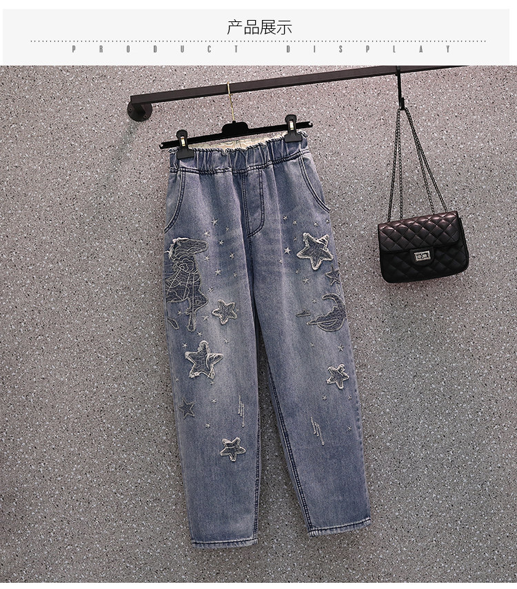 Весенние джинсы, летние тонкие штаны, подходит для полных девушек, высокая талия, с вышивкой, свободный крой, оверсайз