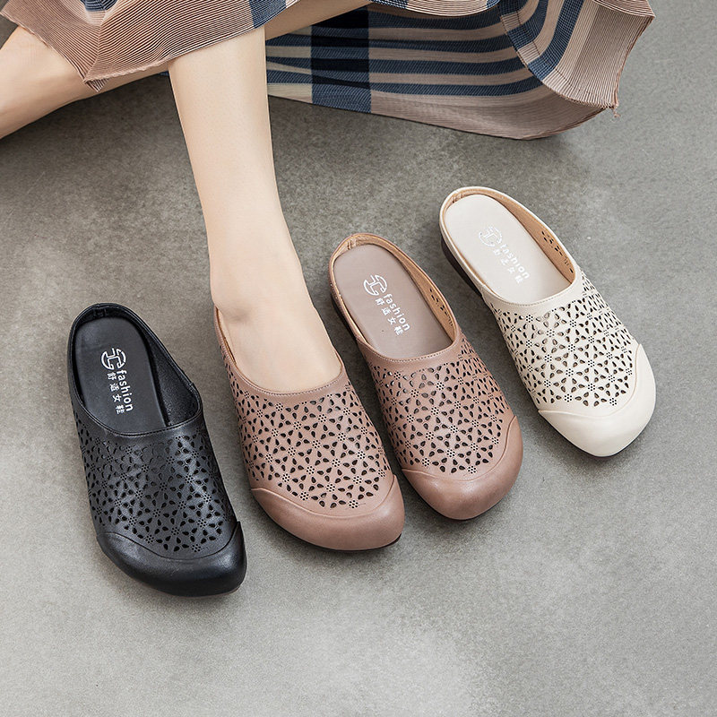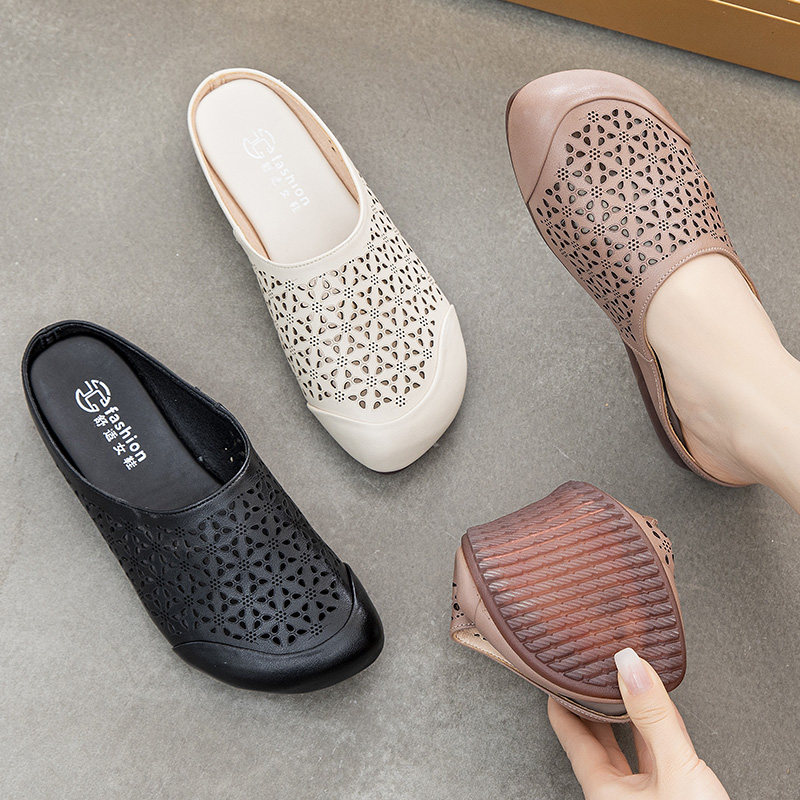 Слайдеры для матери, летние тапочки, комфортные сандалии, коллекция 2021, из натуральной кожи, мягкая подошва, для среднего возраста