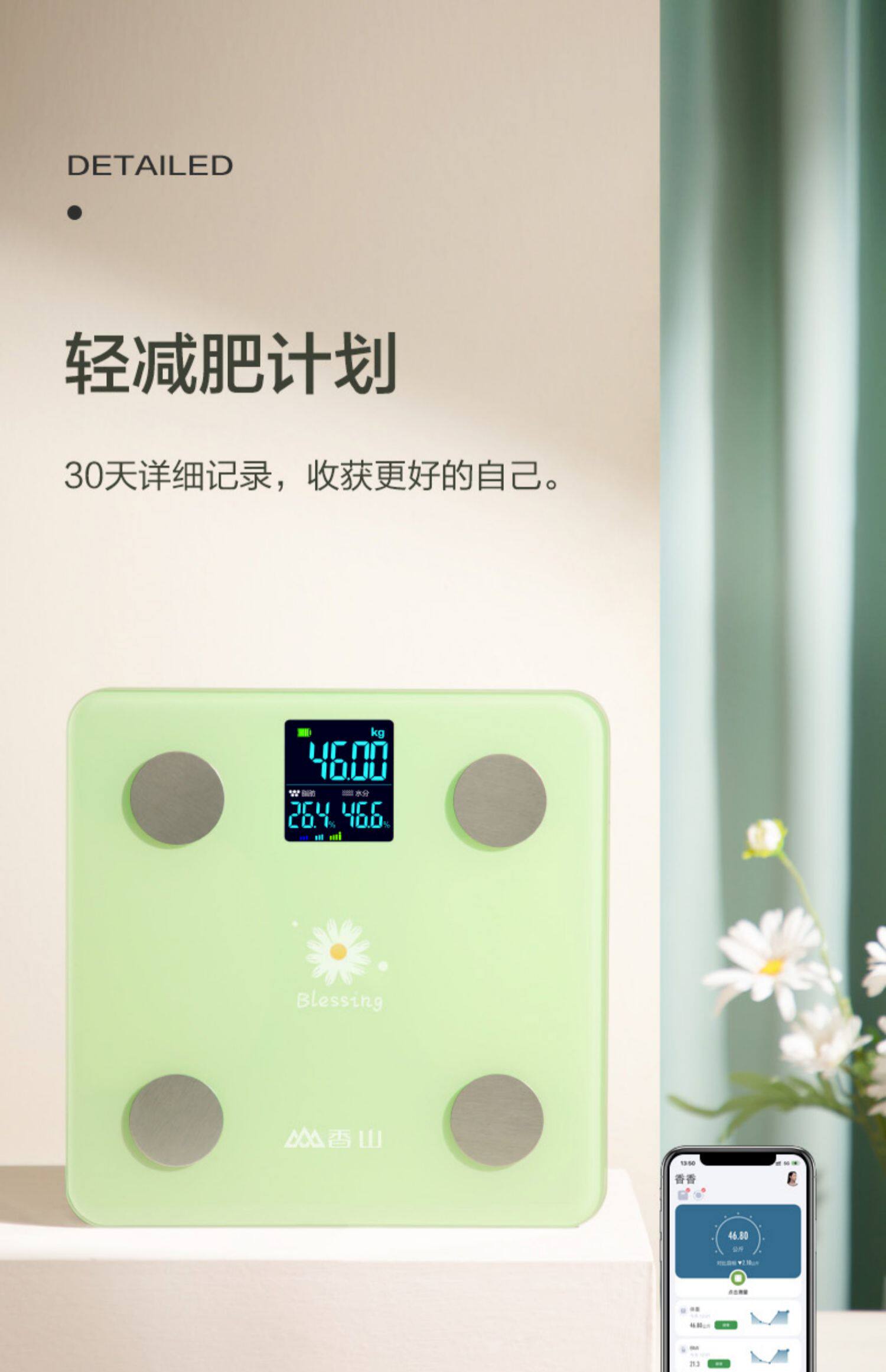 香山 Электронная шкала взвешивания домохозяйства Точное интеллектуальное измеренное жирное жир для тела называется общежитием для маленькой девочки взвешивание