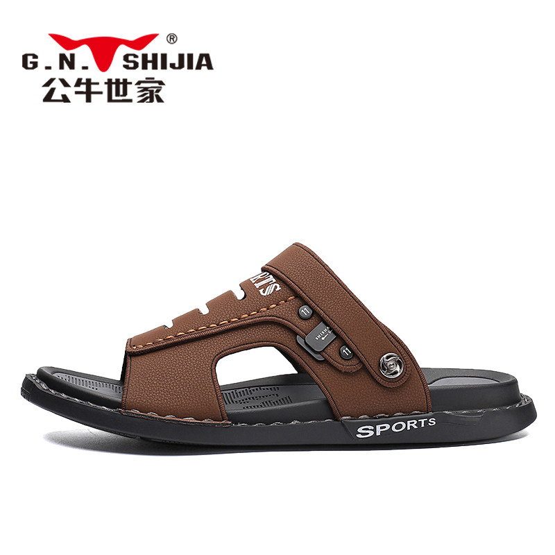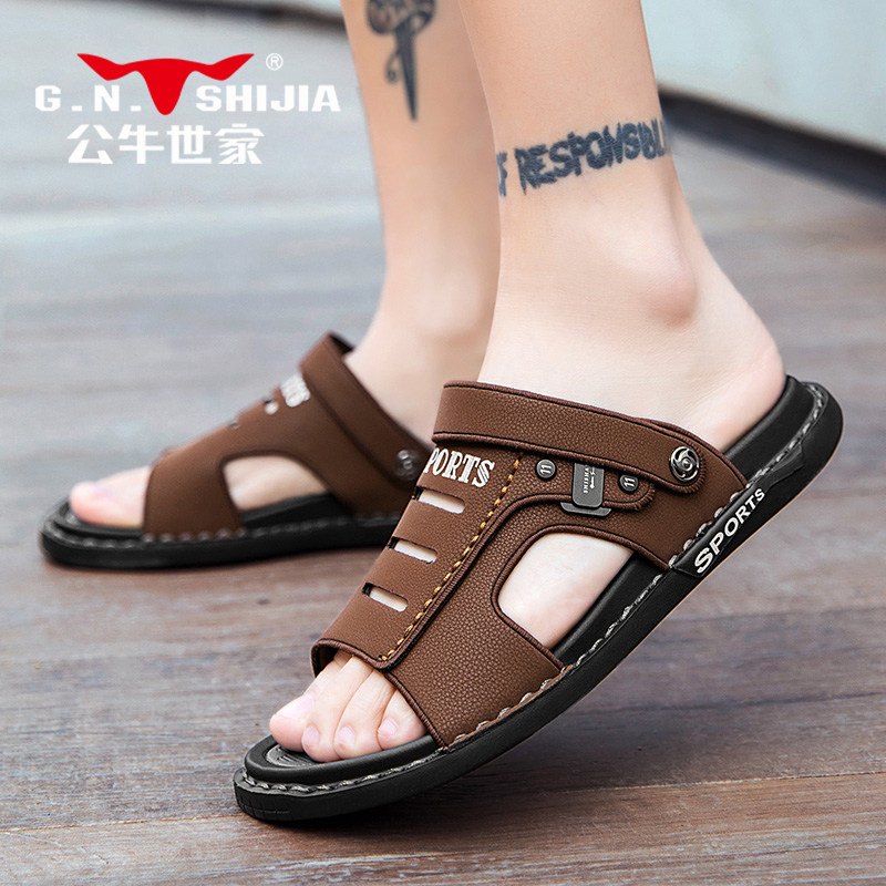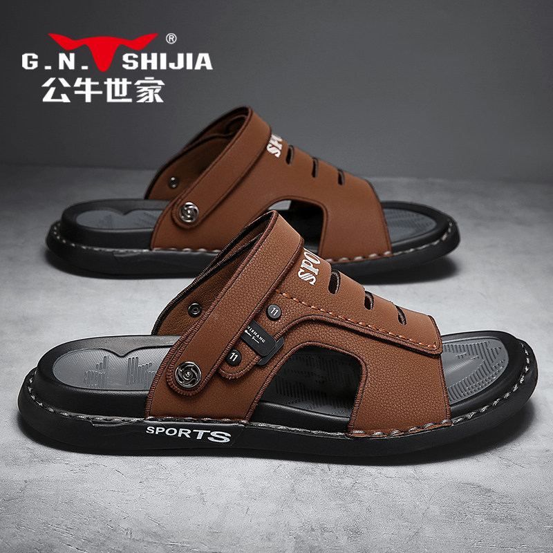 Летние сандалии, нескользящие тапочки для отдыха, пляжные слайдеры, из натуральной кожи, мягкая подошва