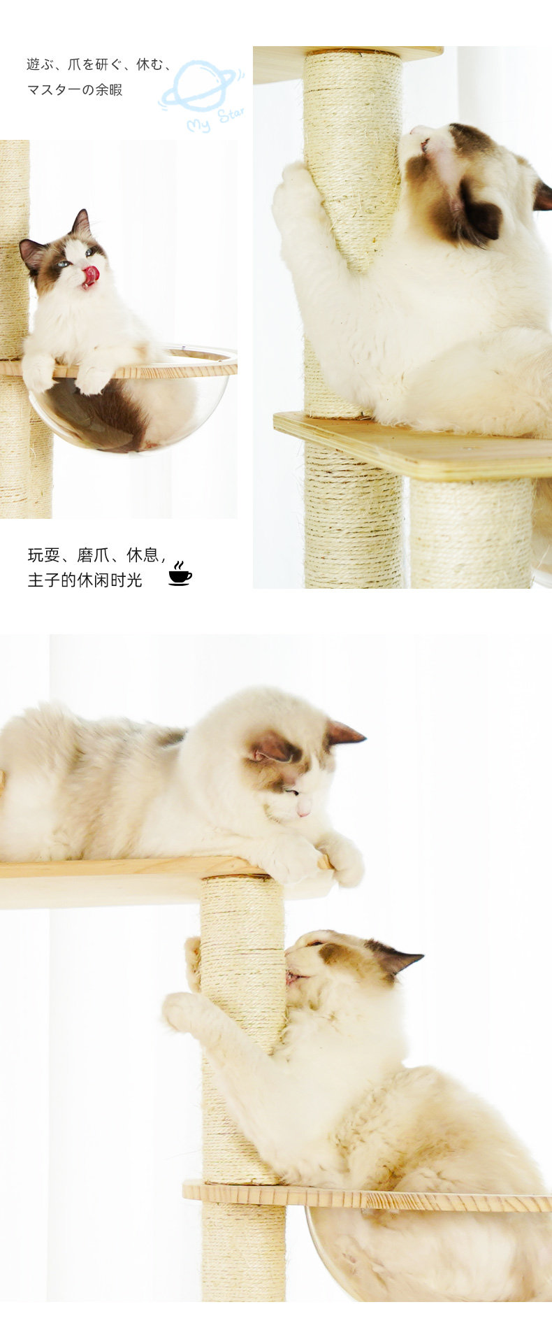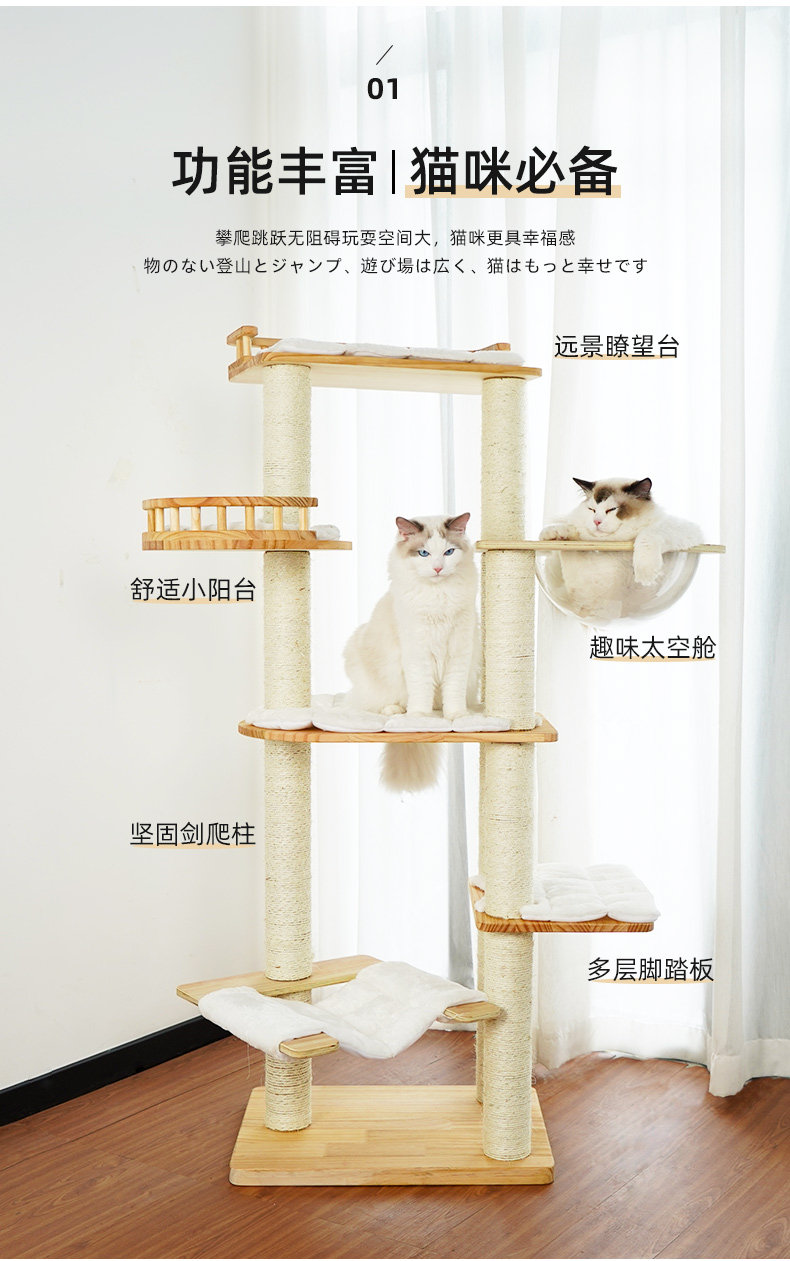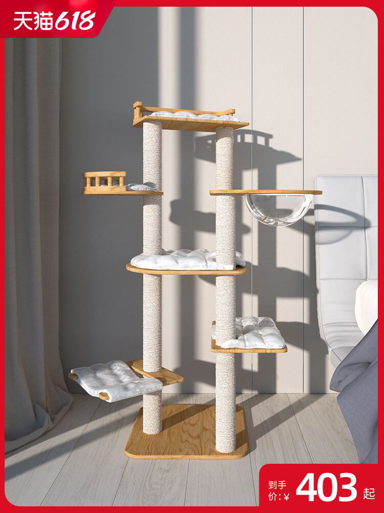 Кошачья стойка кошачья кошачья кошачья дерево интегрированное крупноклассные летние твердые деревянные полки меча -линейно -лазание.
