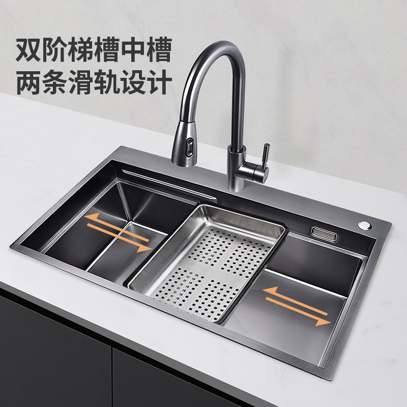 - [A1-4] Черный титановый нано Большой односпогенный слот 78*48+черный накачанный кран