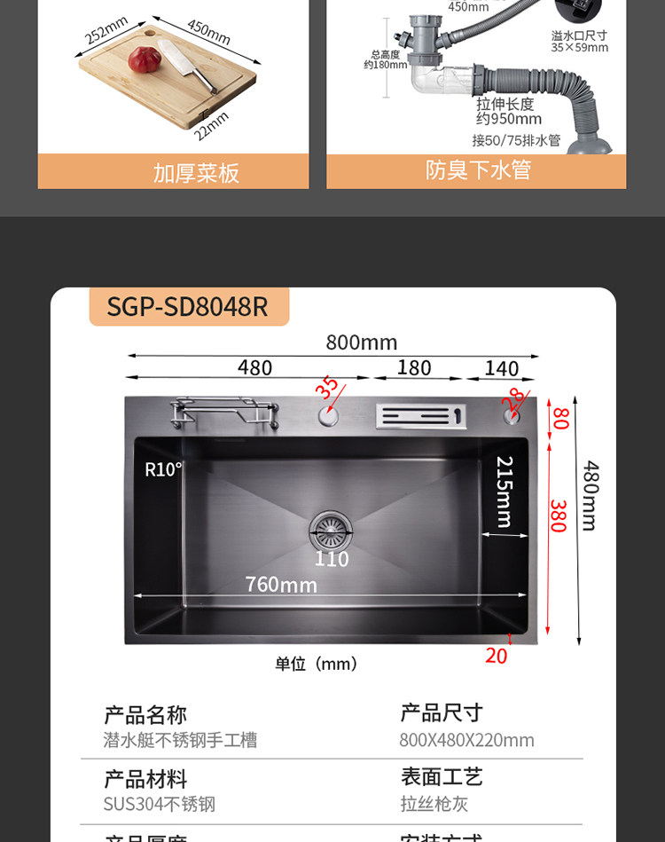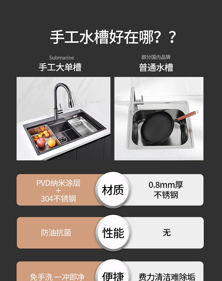 Подводная подводная лодка нано раковина 304 Ручное слот из нержавеющей стали.
