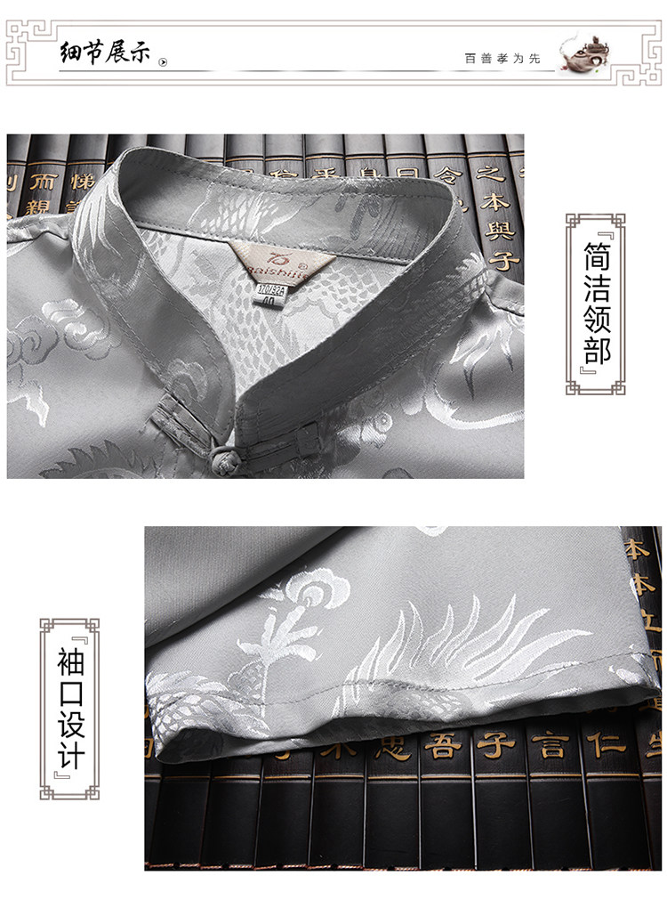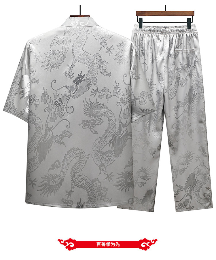 Летний шелковый комплект для пожилых людей, рубашка, ханьфу, для среднего возраста, короткий рукав