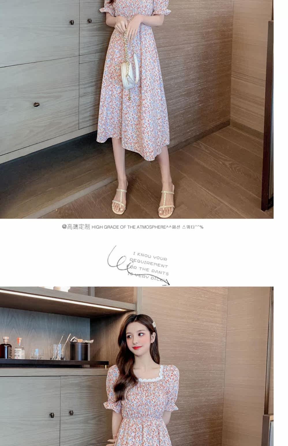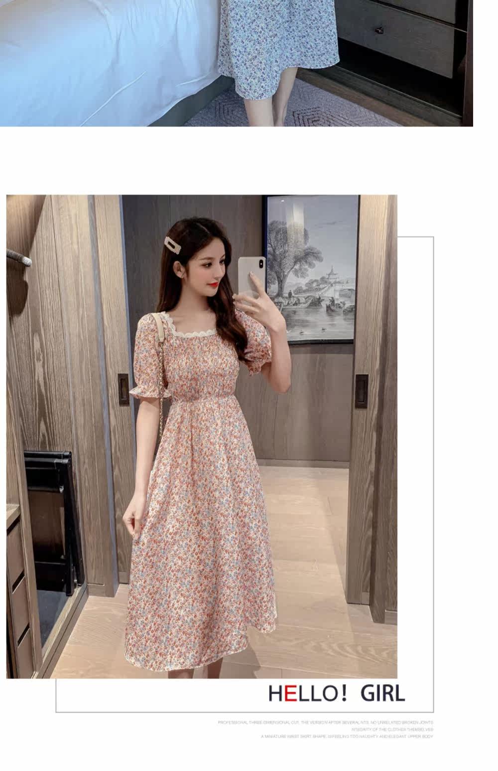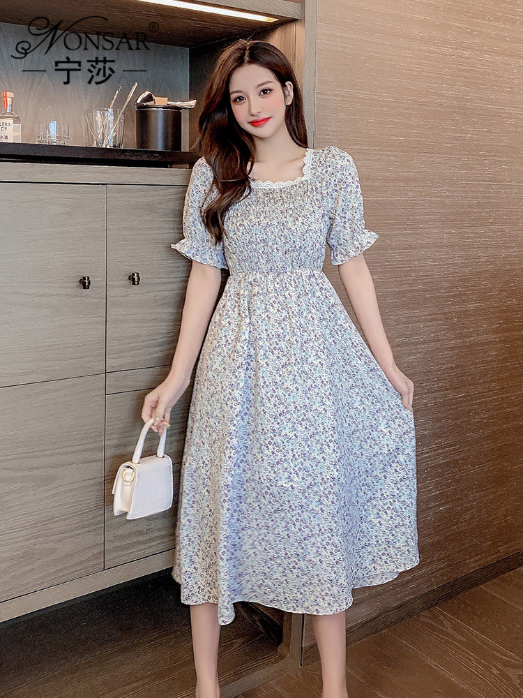 Летний модный приталенный корсет, платье, 2021 года, в корейском стиле, городской стиль, квадратный вырез, в цветочек