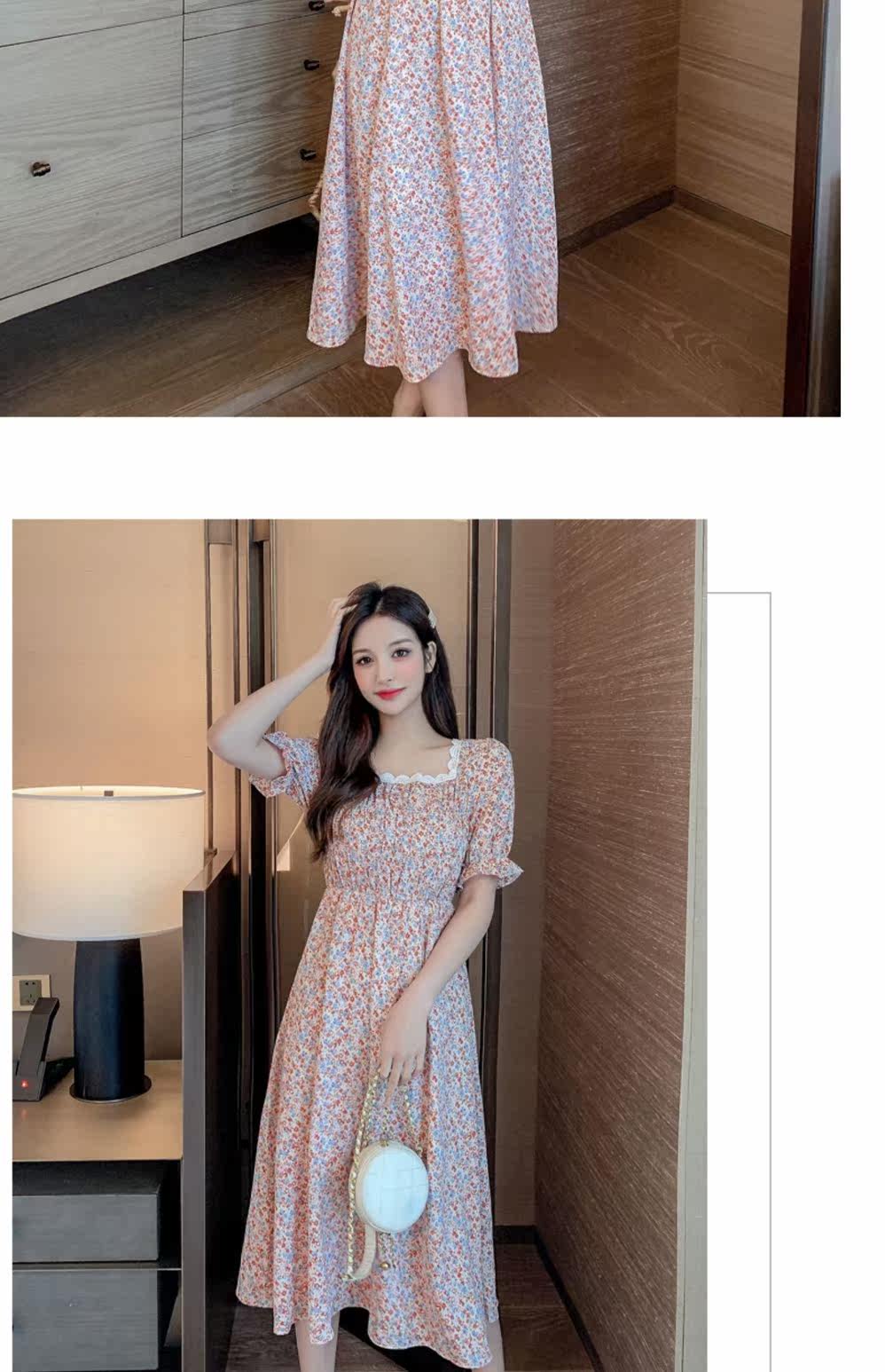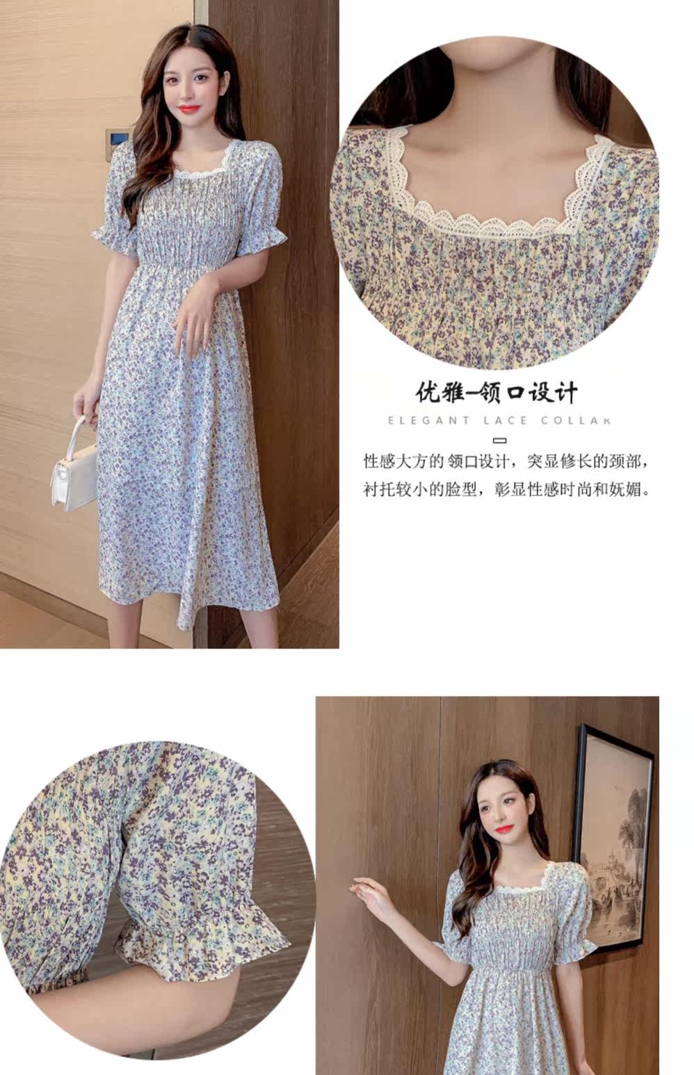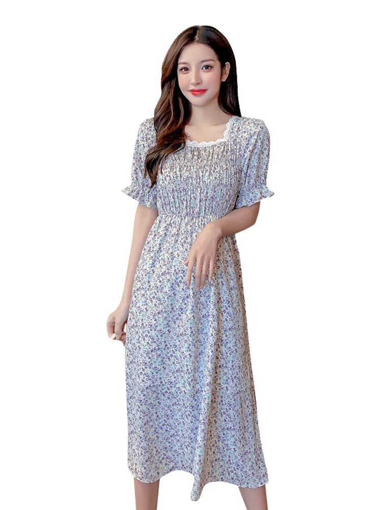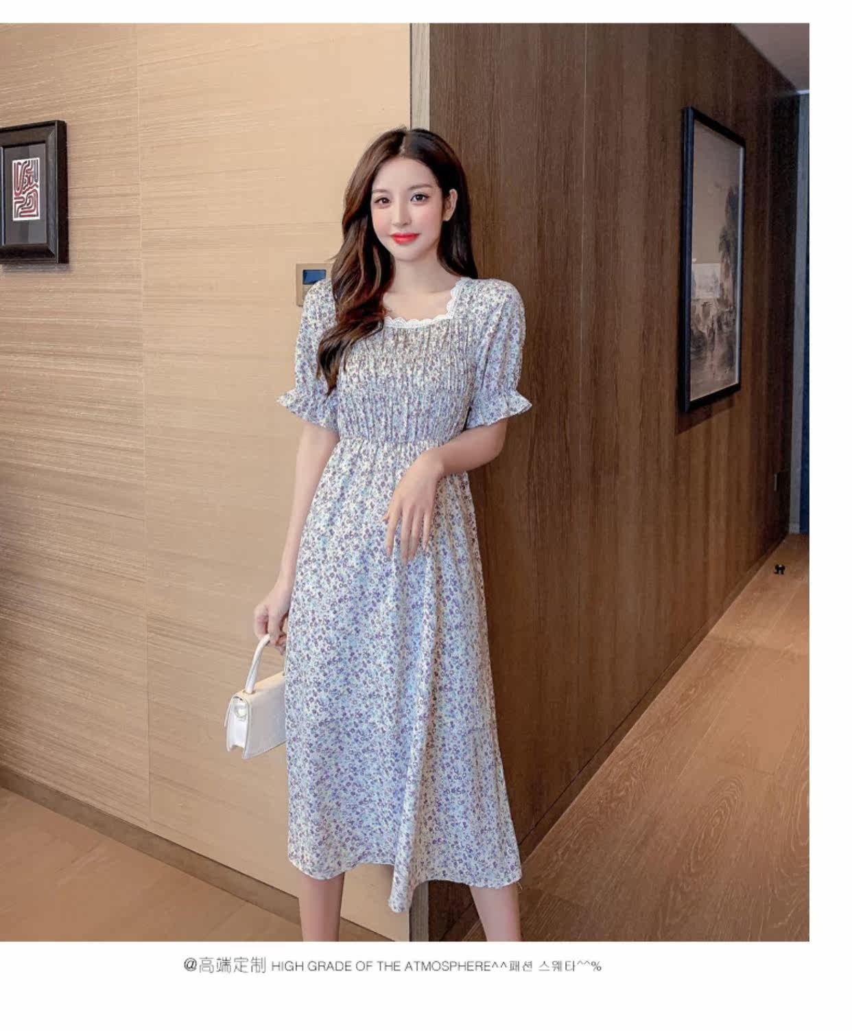 Летний модный приталенный корсет, платье, 2021 года, в корейском стиле, городской стиль, квадратный вырез, в цветочек