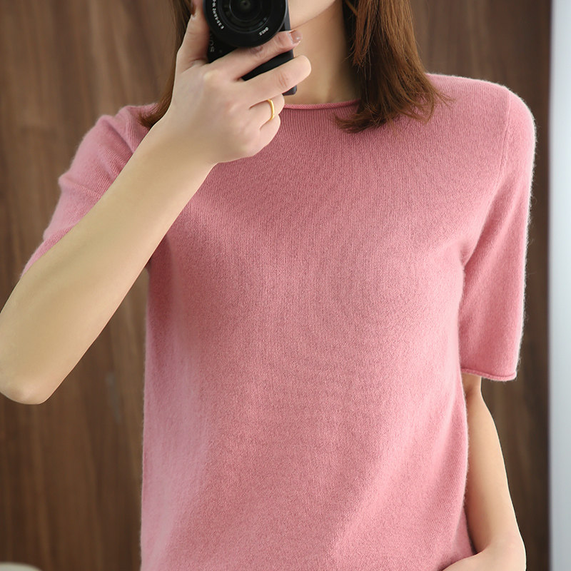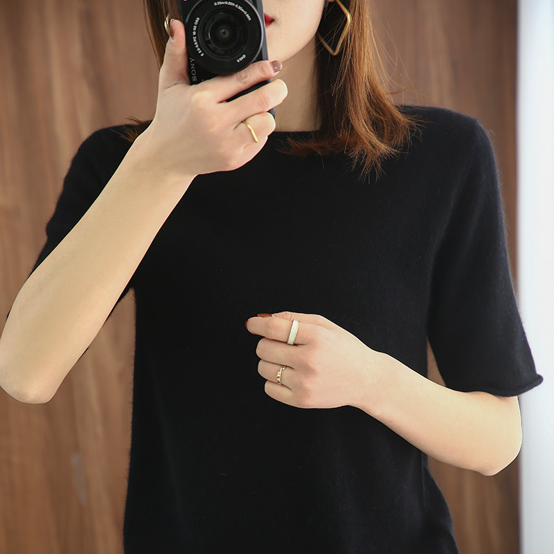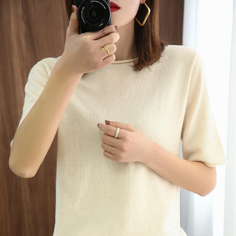 Хлопковая летняя модная трикотажная однотонная базовая футболка с круглым воротником, сезон 2021, короткий рукав
