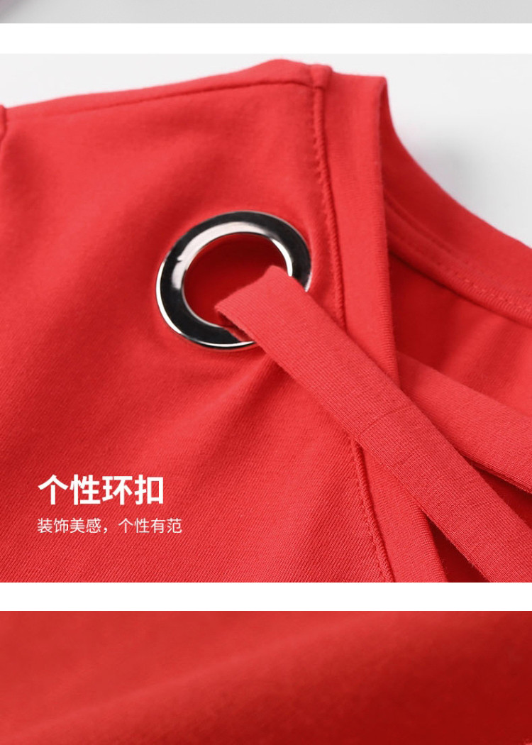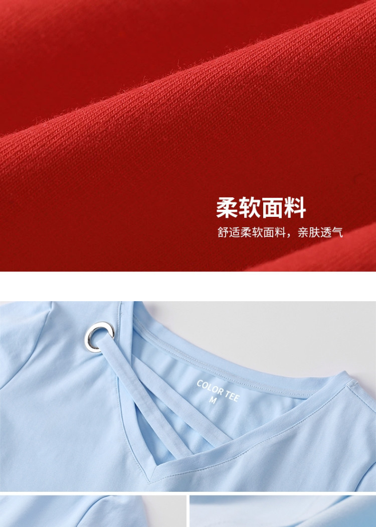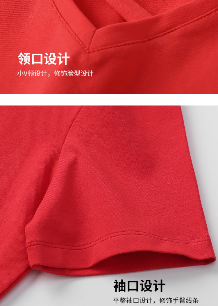 艾米恋 Летняя красная сексуальная хлопковая футболка, V-образный вырез, короткий рукав, свободный крой