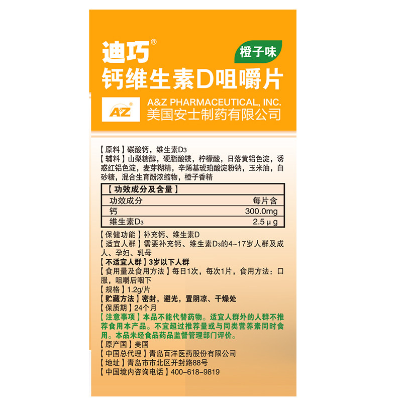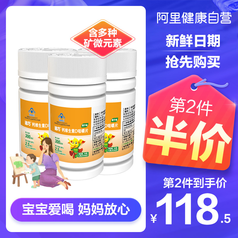 3 ящики дициао детей кальция витамин D Жевать таблетки кальция апельсиновый вкус детей и подростков Аутентичный импорт добавки кальция