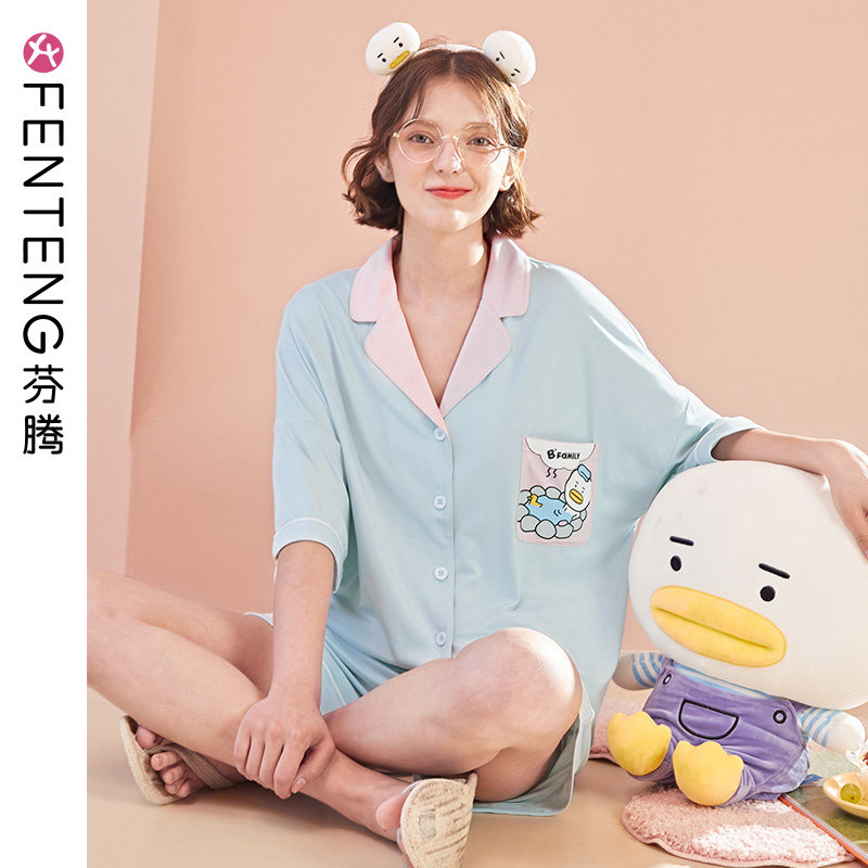 芬腾 Летняя пижама, тонкие мультяшные шорты, антибактериальный комплект, короткий рукав