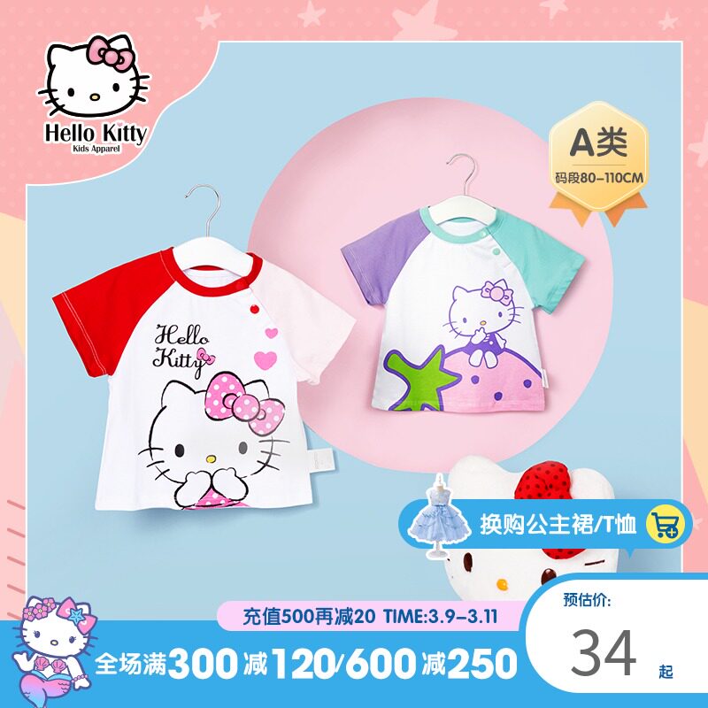 Hello Kitty, летняя футболка с коротким рукавом с круглым воротником, детская одежда