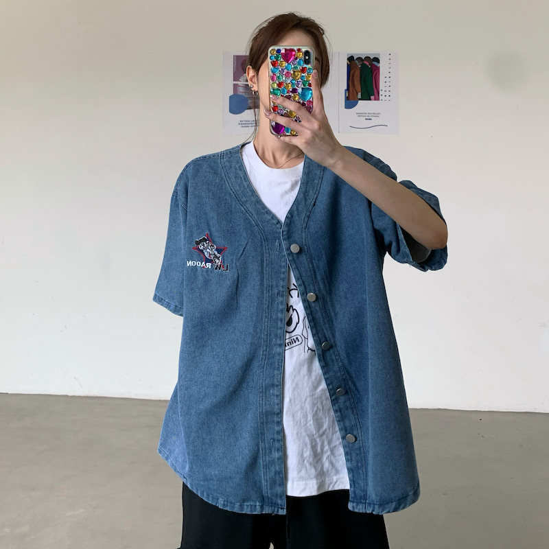 Ретро летняя рубашка, куртка для школьников и студентов, с вышивкой, сезон 2021, свободный крой