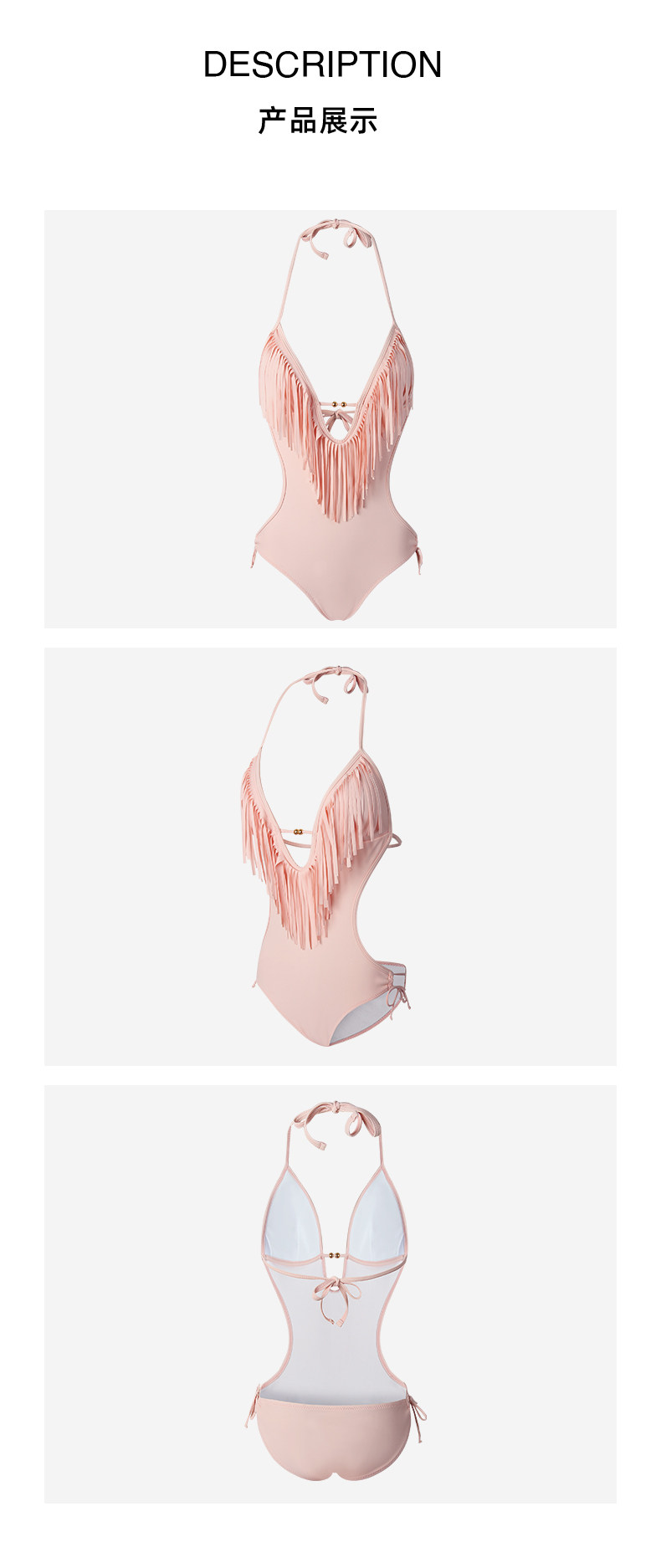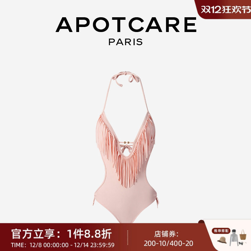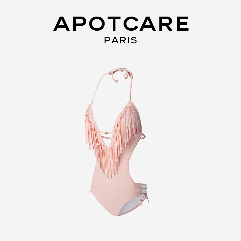 Французская апоткаре висящая шея глубоко v купальник женская голая розовая кисточка сексуальная треугольная одиночная однопод
