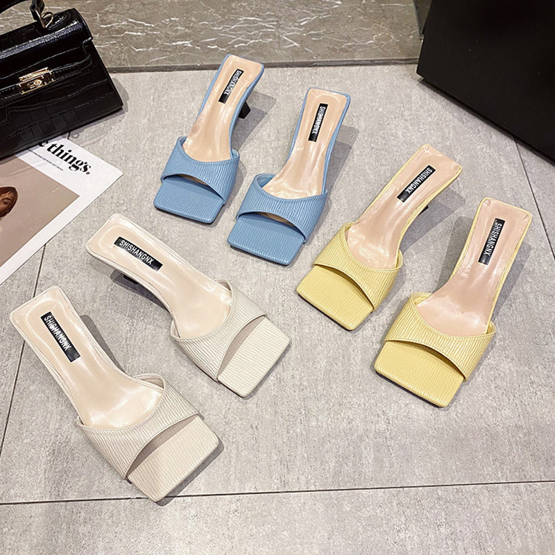 Tmall, слайдеры на высоком каблуке, тапочки, летняя плетеная обувь, сезон 2021