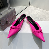 Летние высокие тапочки с заостренным носом, обувь, европейский стиль, сезон 2021, из натуральной кожи