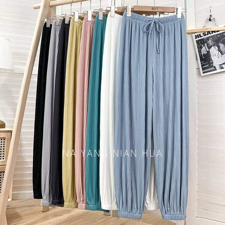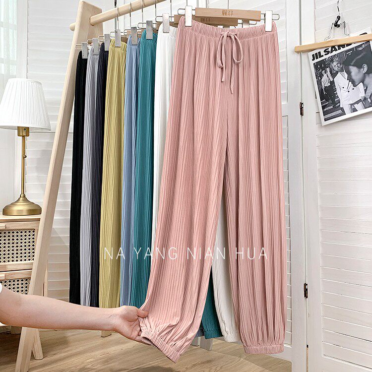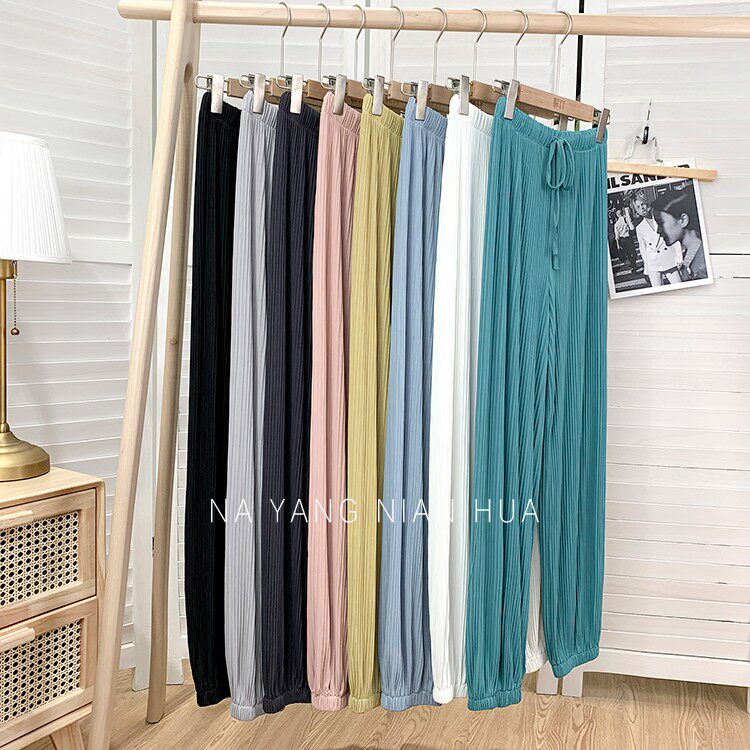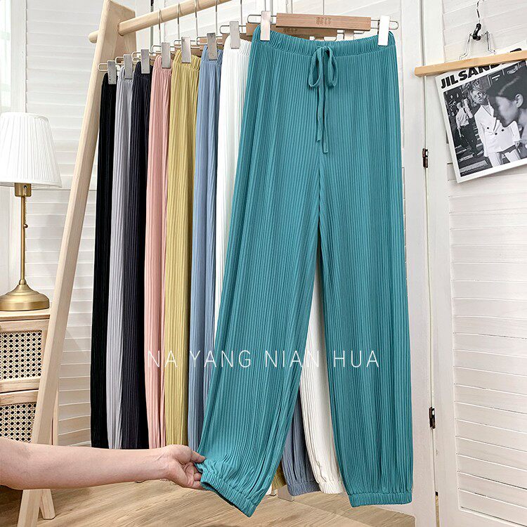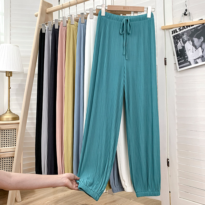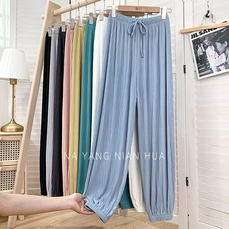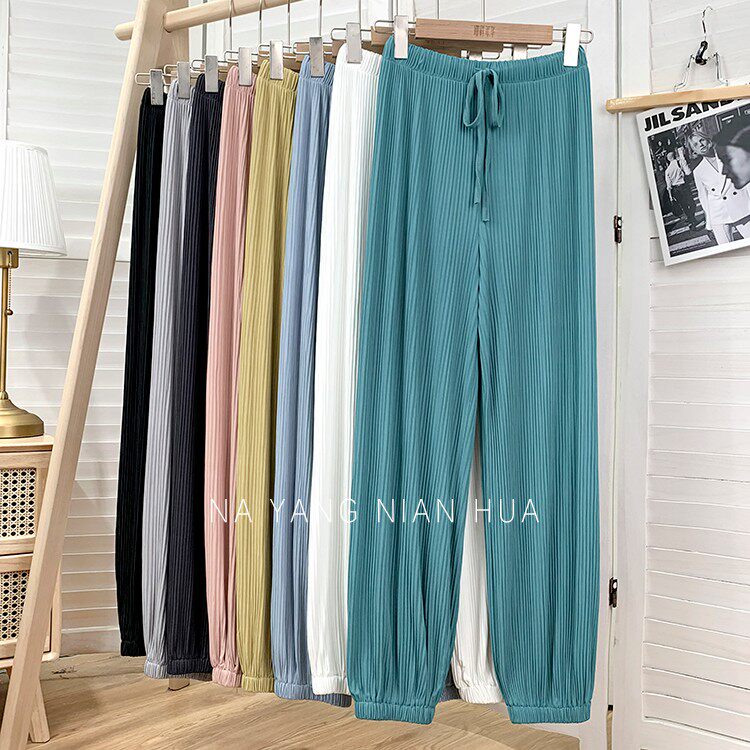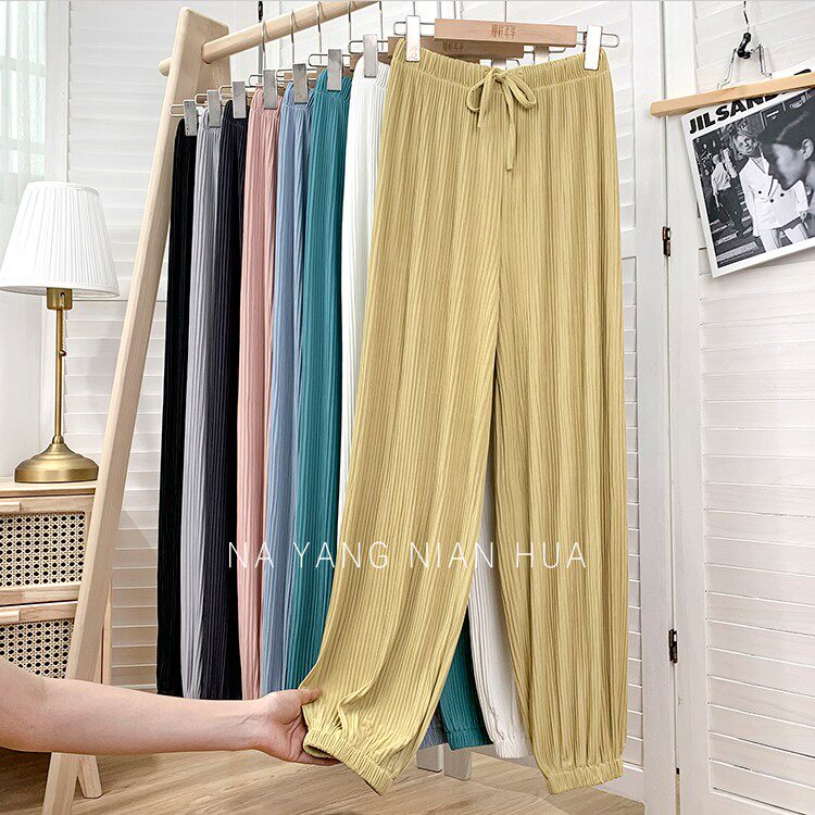 Приталенные шелковые штаны, фонарь, высокая талия, свободный крой, защита от солнца