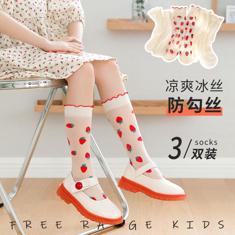 Детские летние тонкие шелковые носки, японские кружевные колготки, средней длины, кружевное платье