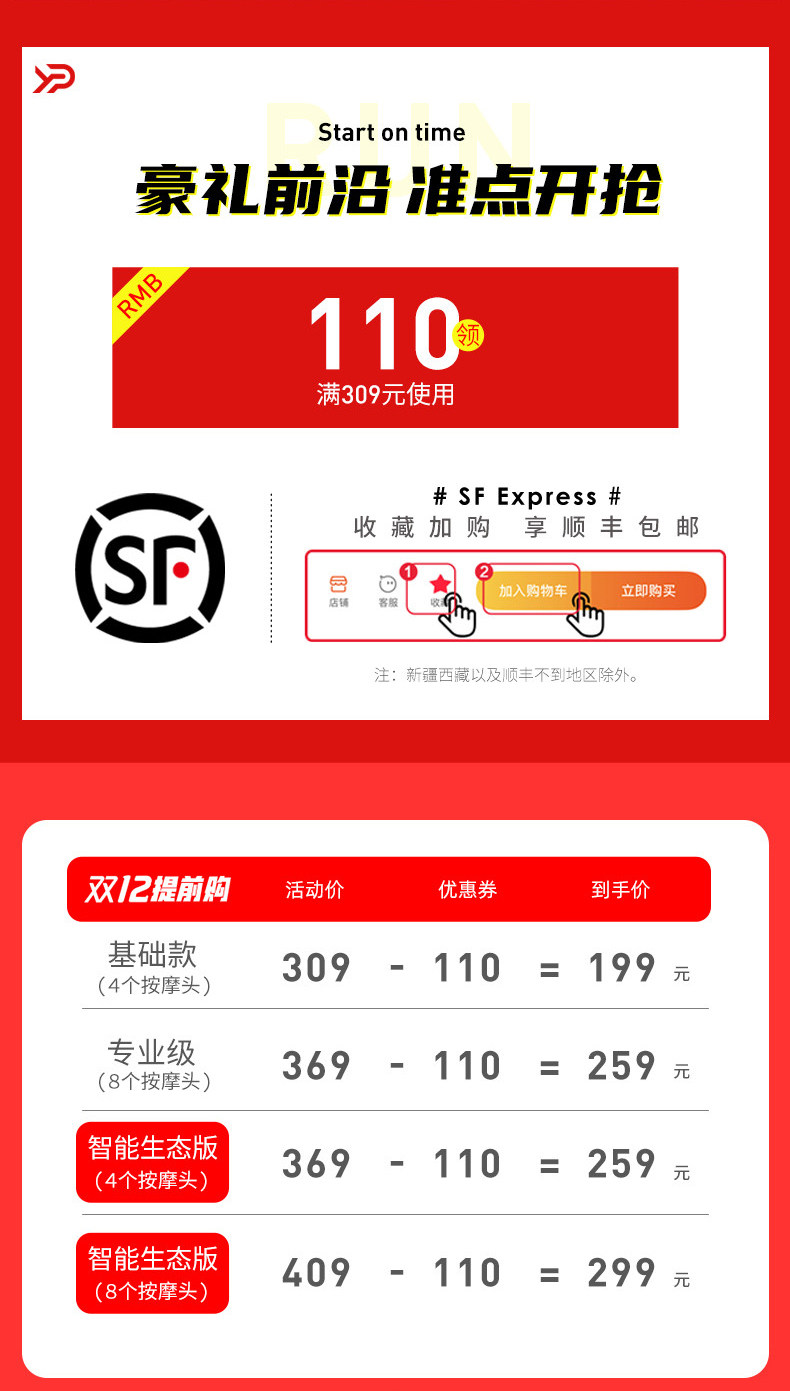 Ypoo Easy Run y5 фасция, шейная пленка мышечная массаж Электрическая вибрационная терапия Многофункциональная конверсионная головка мужская и женщина использует использование