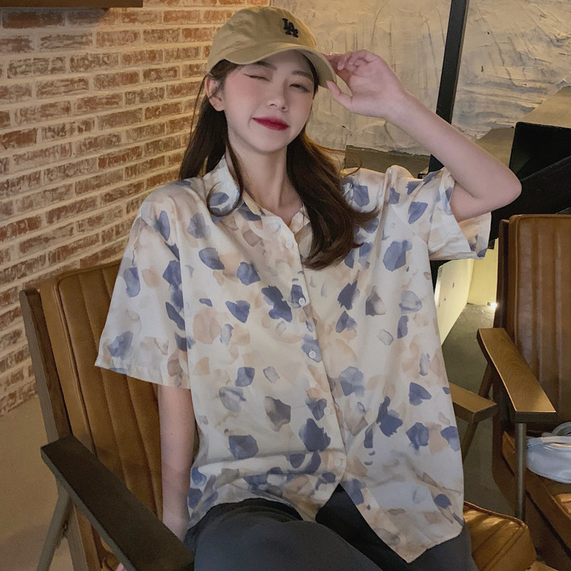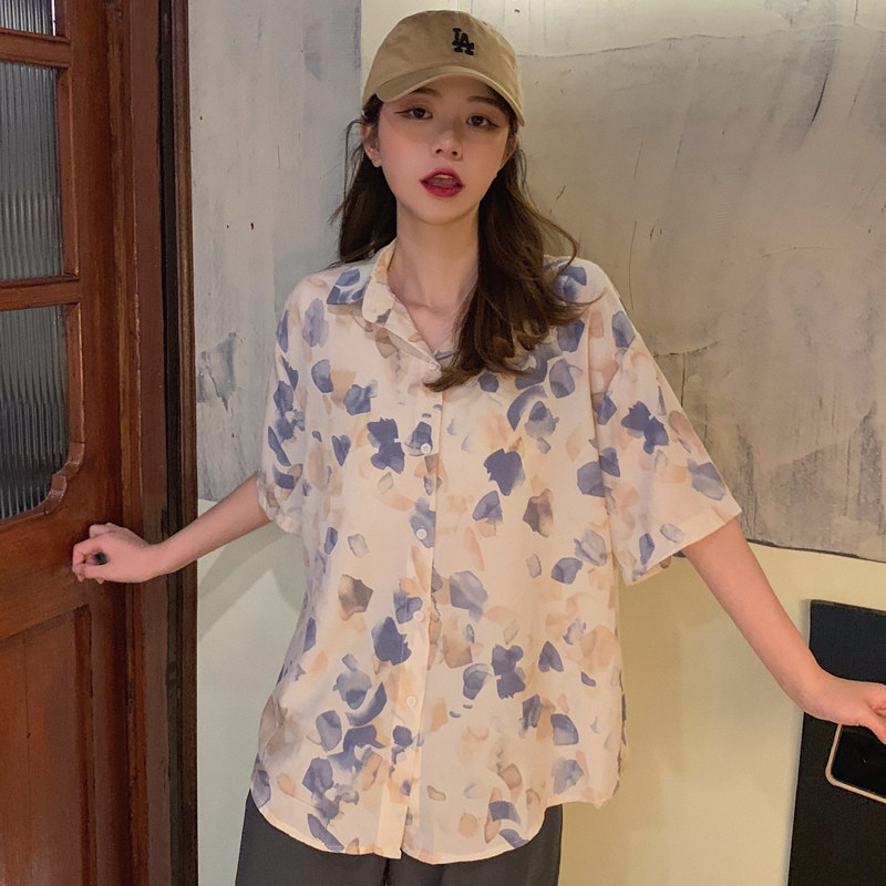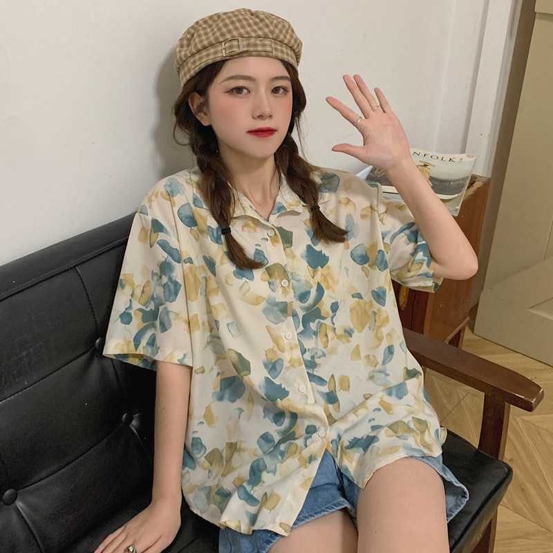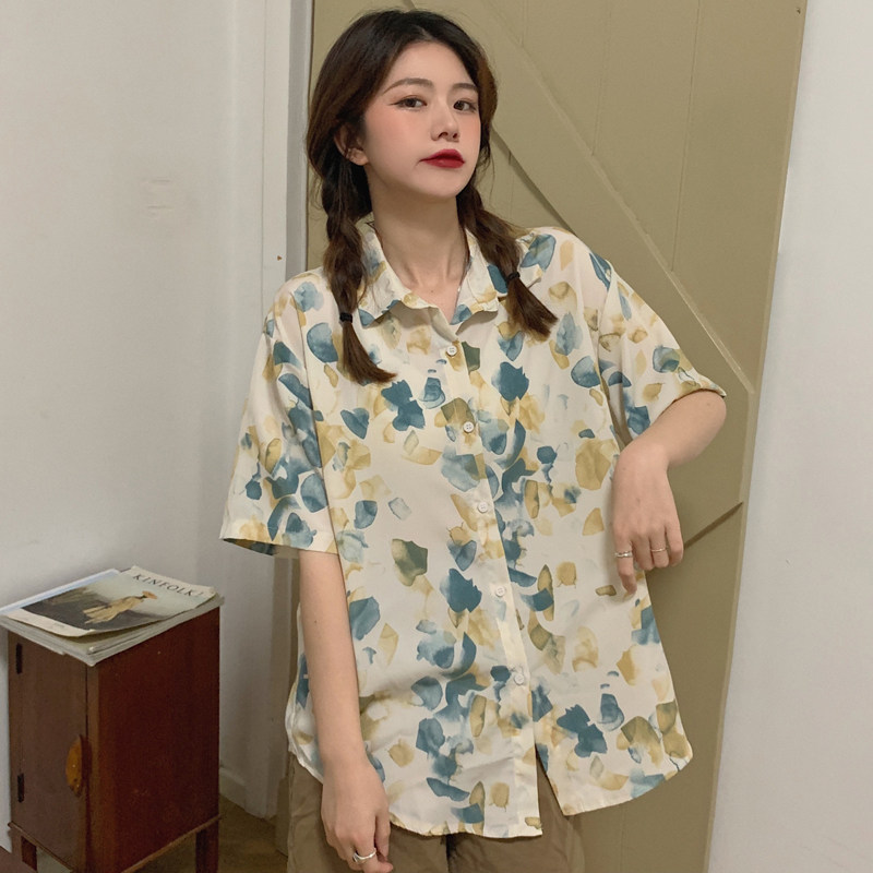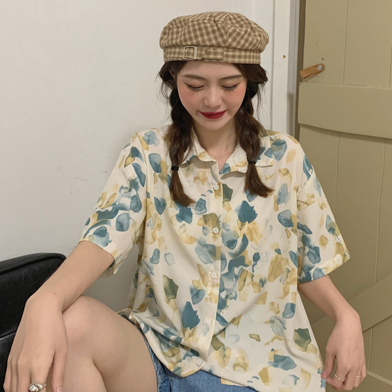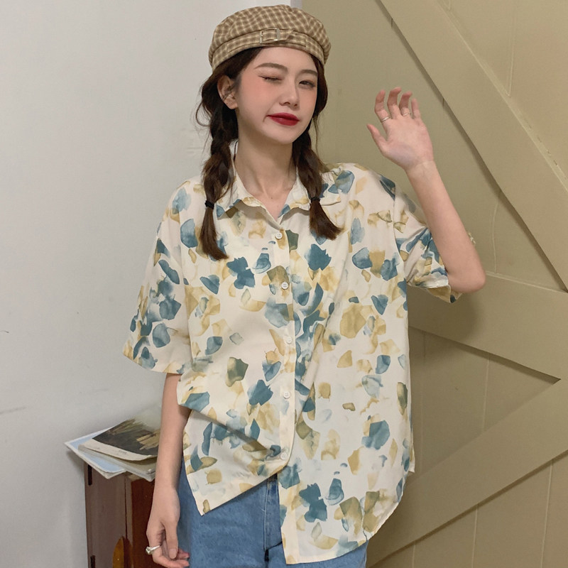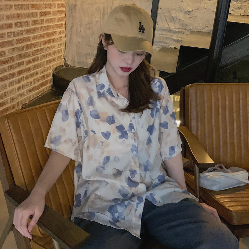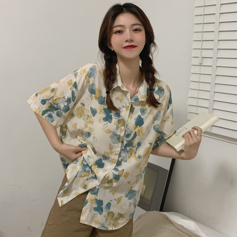 Тонкая ретро дизайнерская рубашка, оверсайз, в корейском стиле, цветочный принт, короткий рукав, защита от солнца, французский стиль, тренд сезона