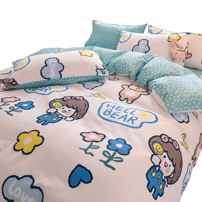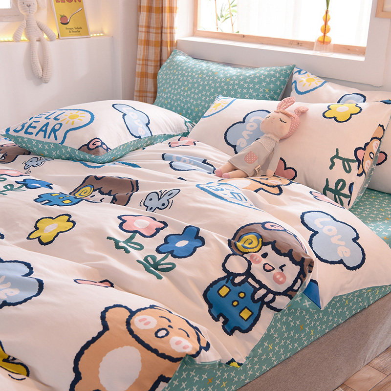 Мультяшный хлопковый комплект, хлопковое одеяло, пододеяльник для принцессы, простыня, покрывало, 4 предмета, 3 предмета