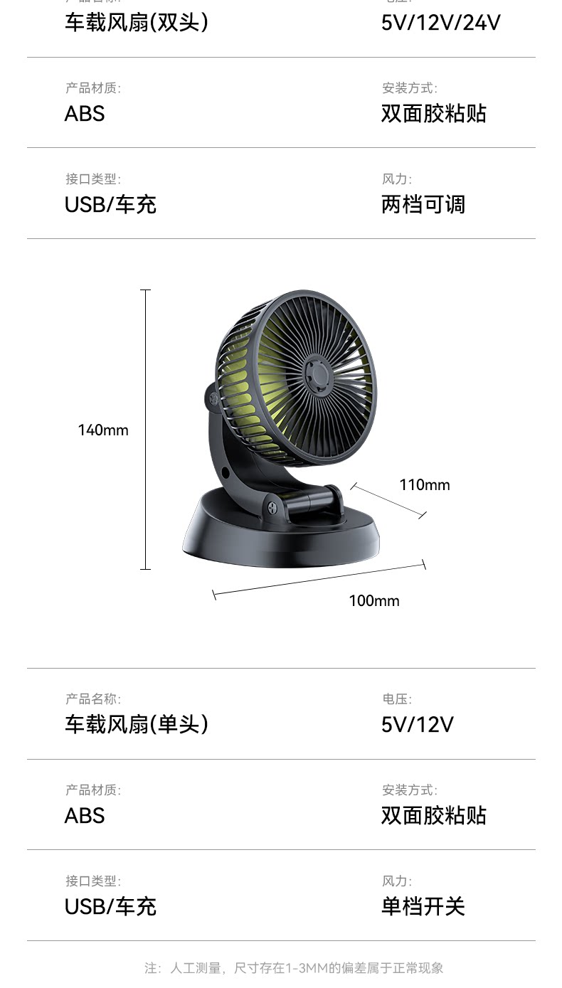 Вентилятор автомобиля 24 В грузовик 12 В охлаждающий ветер посвящен тихий маленький фургон для USB -автомобиля внутренний электрический вентилятор