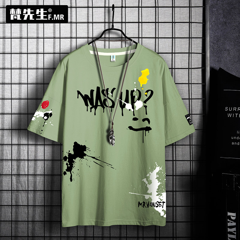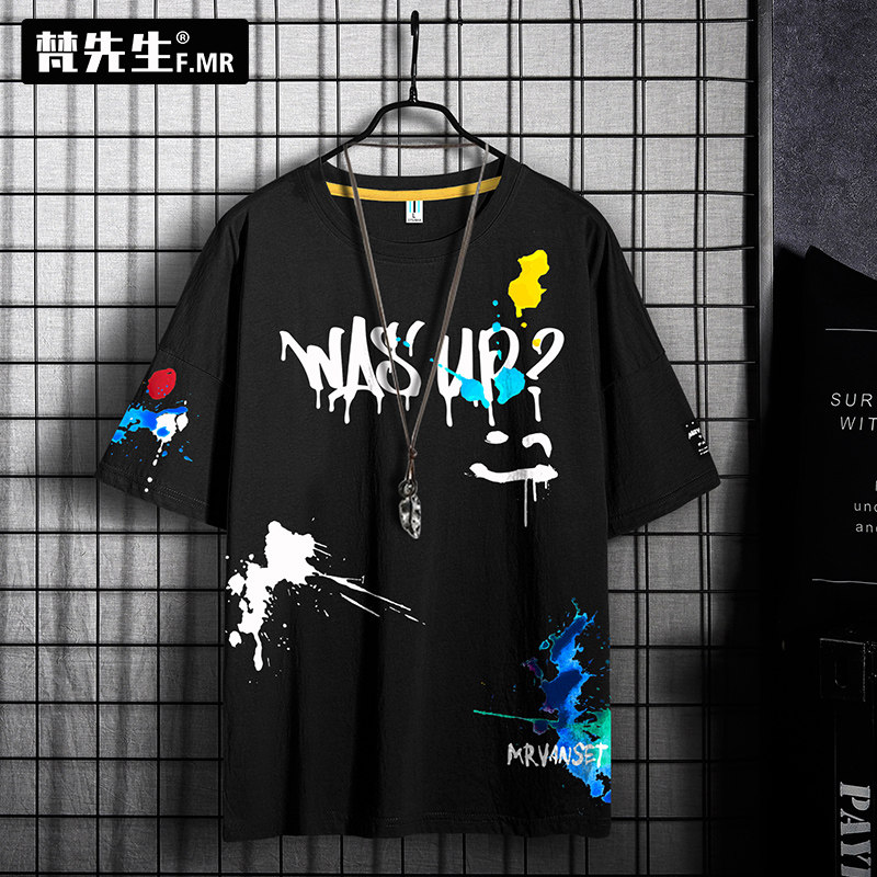 Летняя хлопковая футболка с коротким рукавом в стиле хип-хоп, свободный крой, в американском стиле, большой размер