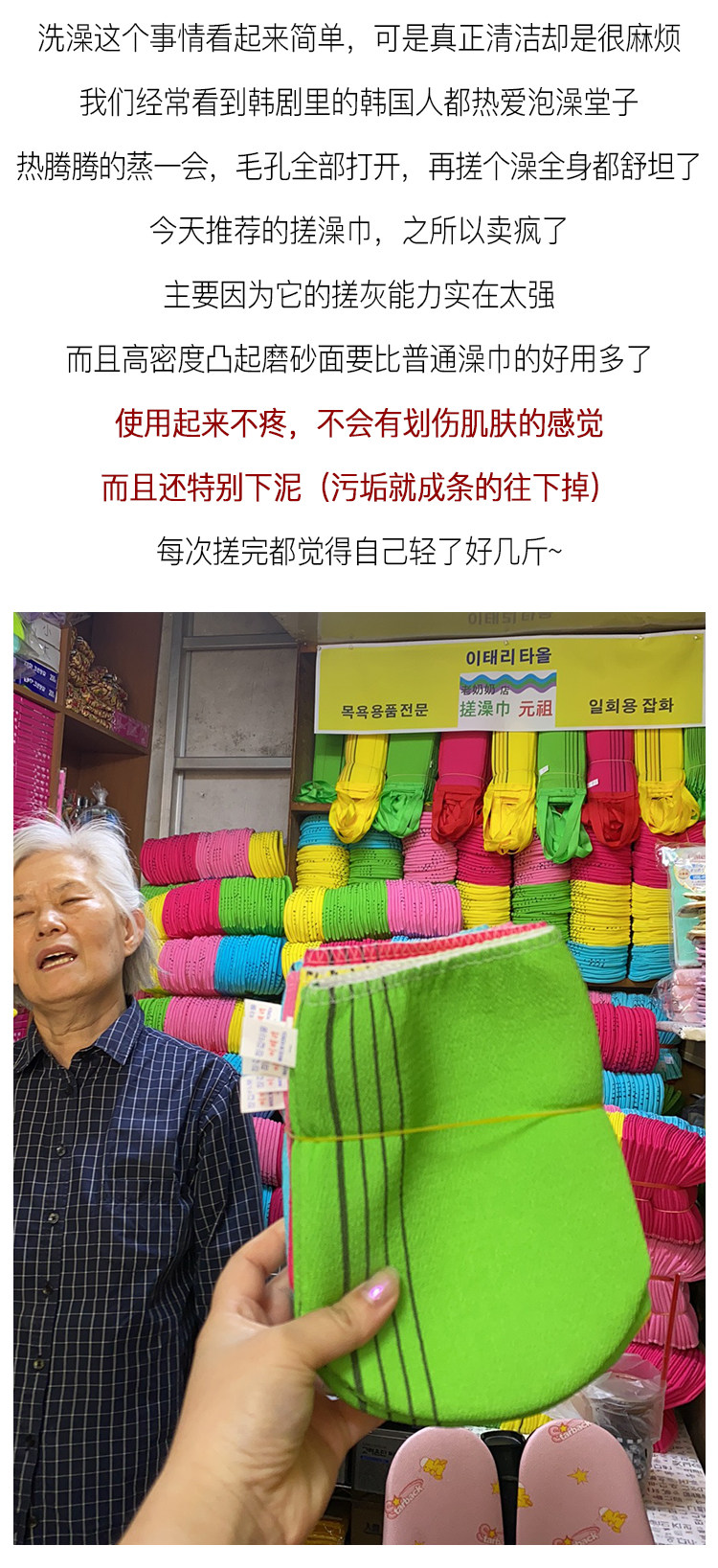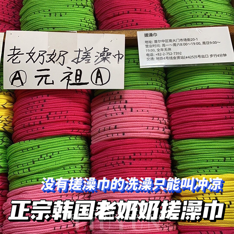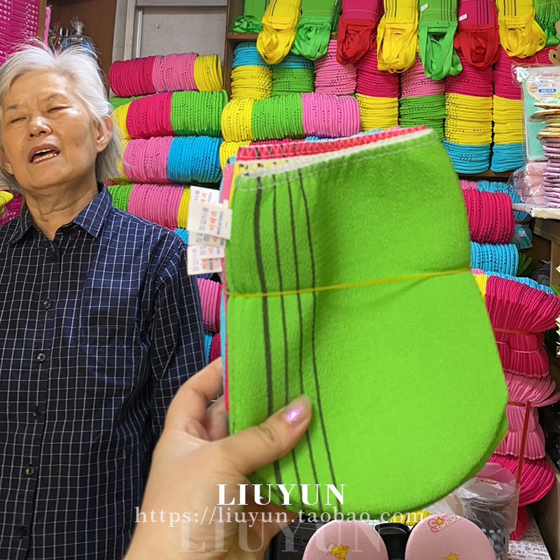 Аккуратно полфунта корейской бабушки потирает полотенце для ванны с полотенцем для ванны, без кожи, потирая грязевое полотенце