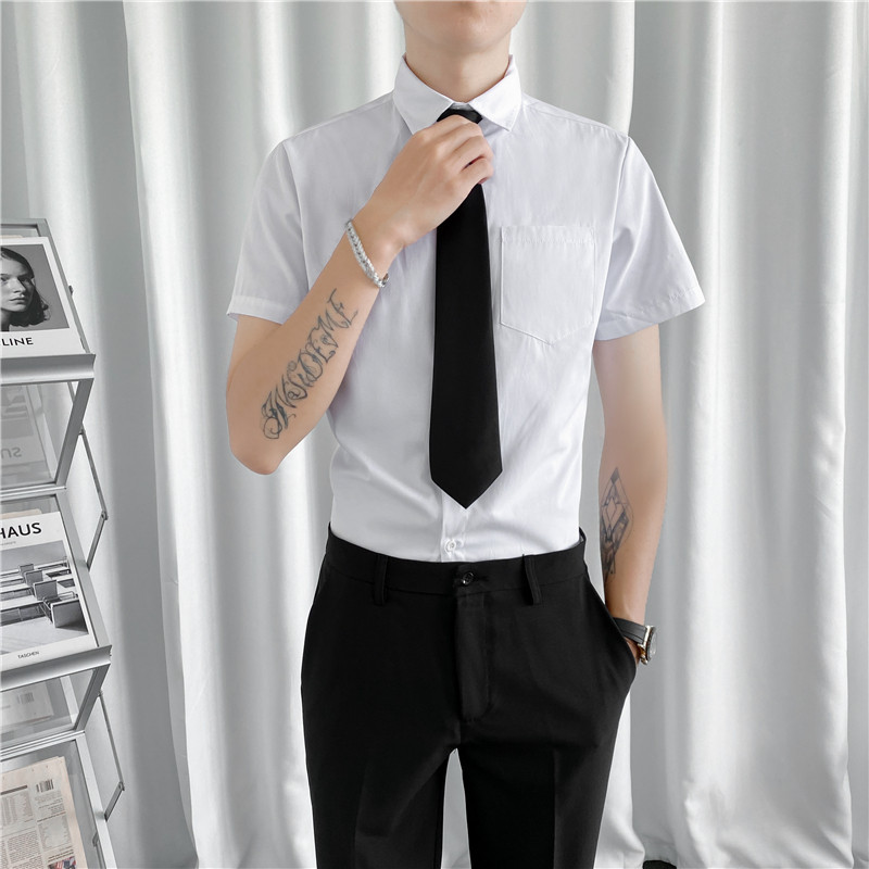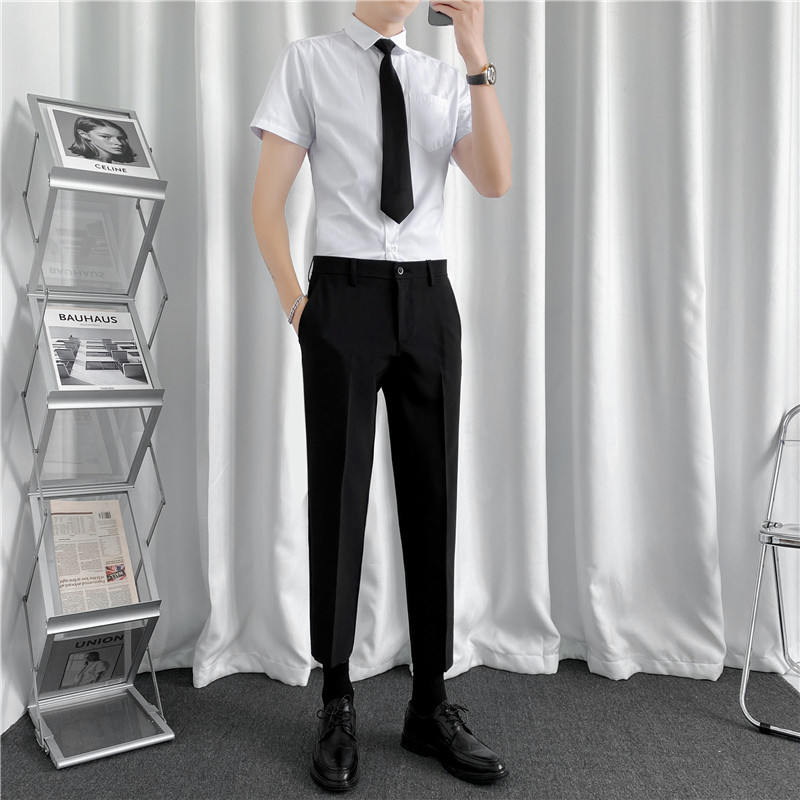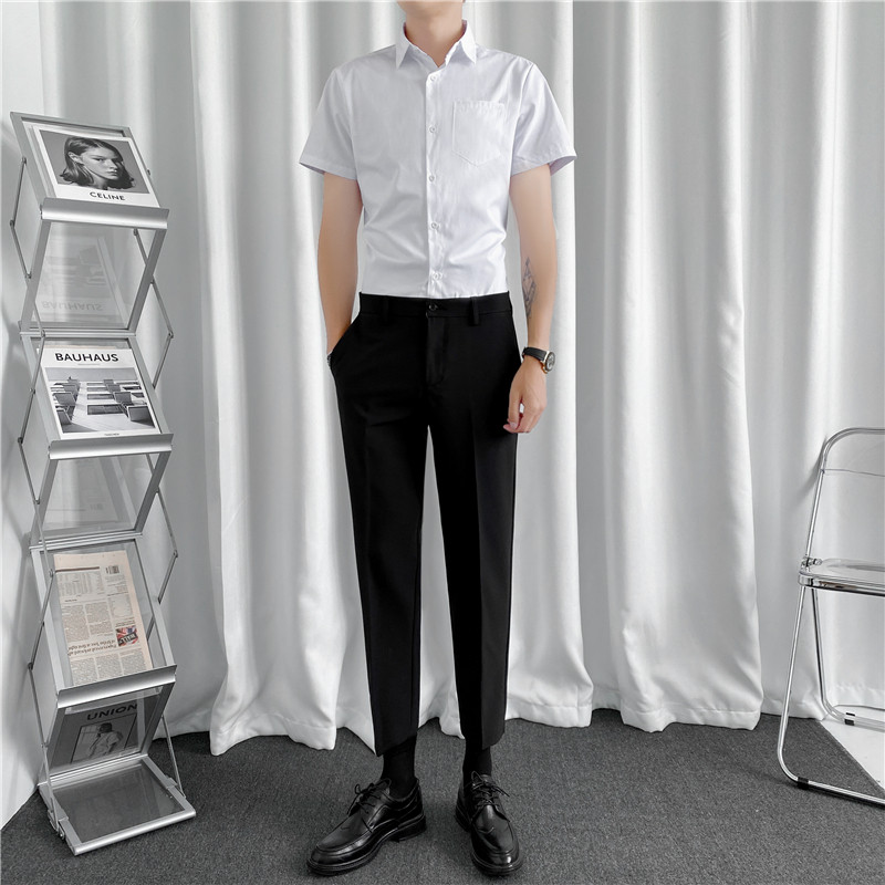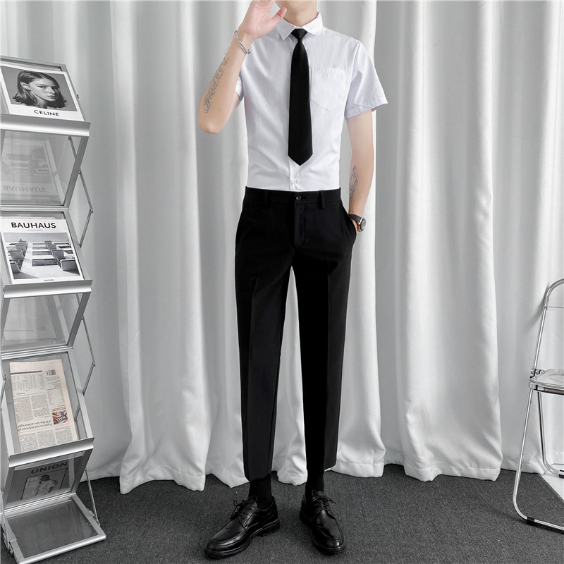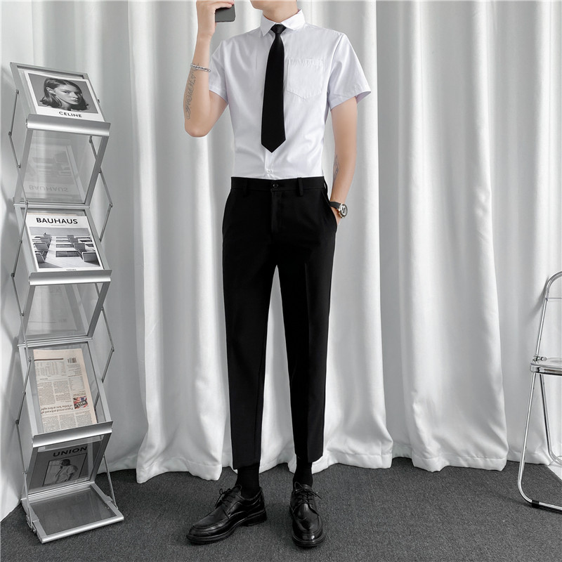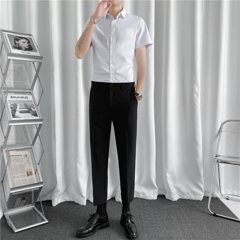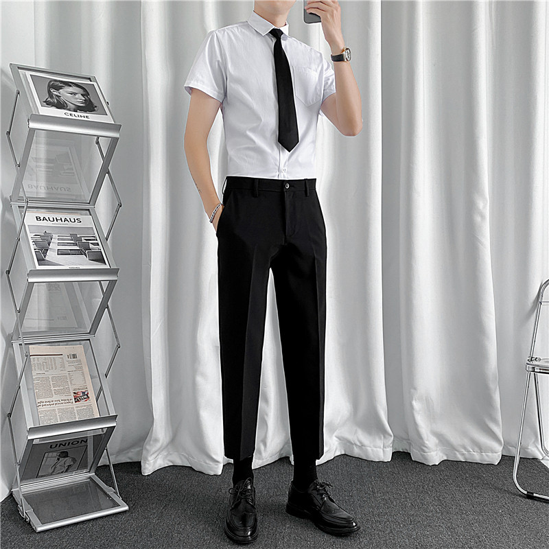 Летняя тонкая рубашка, мужской комплект, короткий рукав, облегающий крой