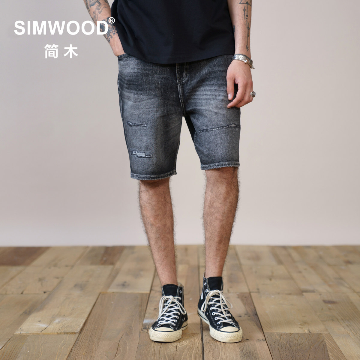 Simwood Джейн Вуд мужчина [свободное издание] вымыть и соскрести талию цветочные декоративные пять шорт для джинсовых точек мужчины