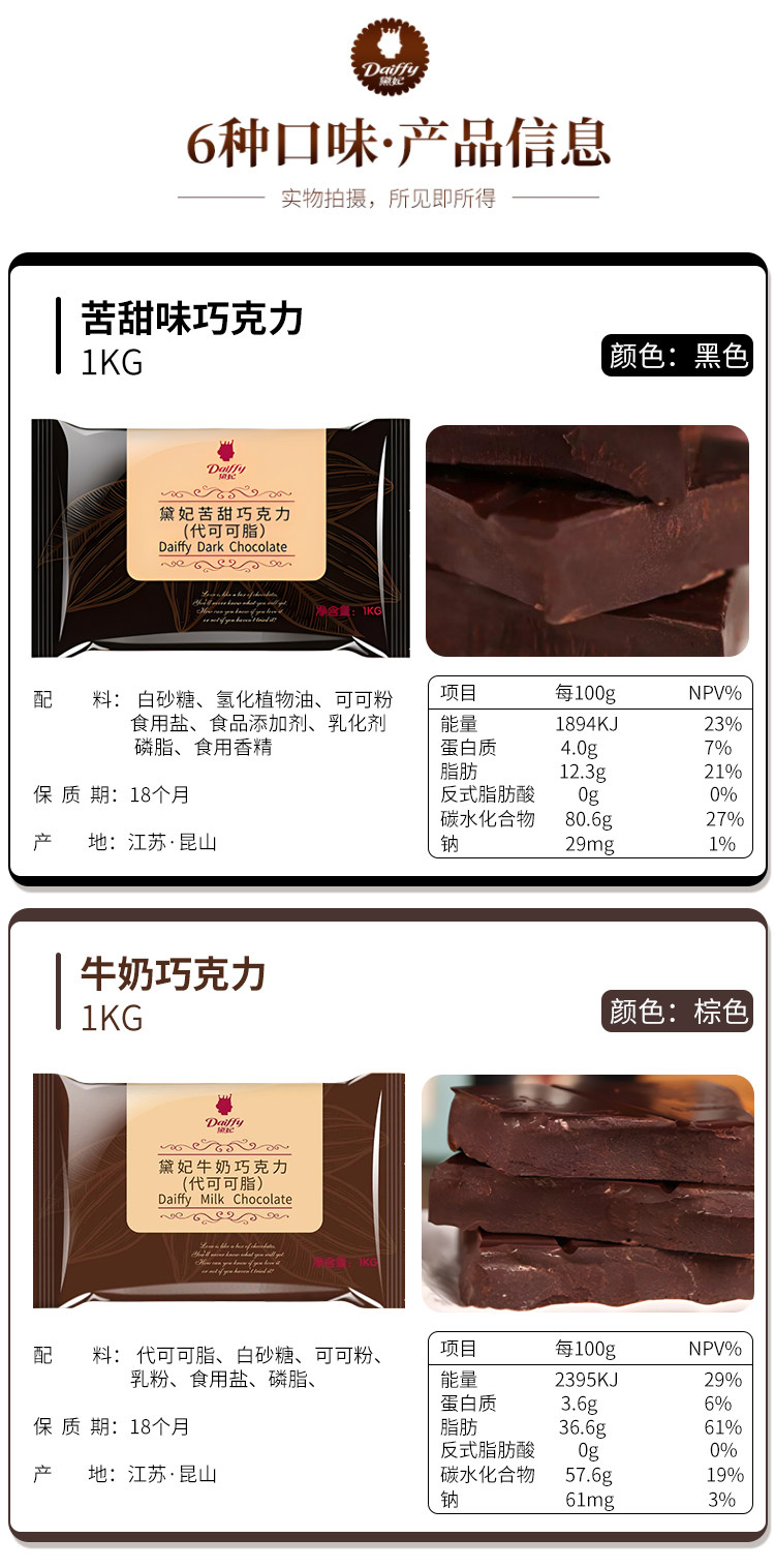 Dai Fei шоколадный блок 1 кг*10 сумки Вся коробка Dai наложница какао какао белый черный черный выпечка коммерческий шоколад