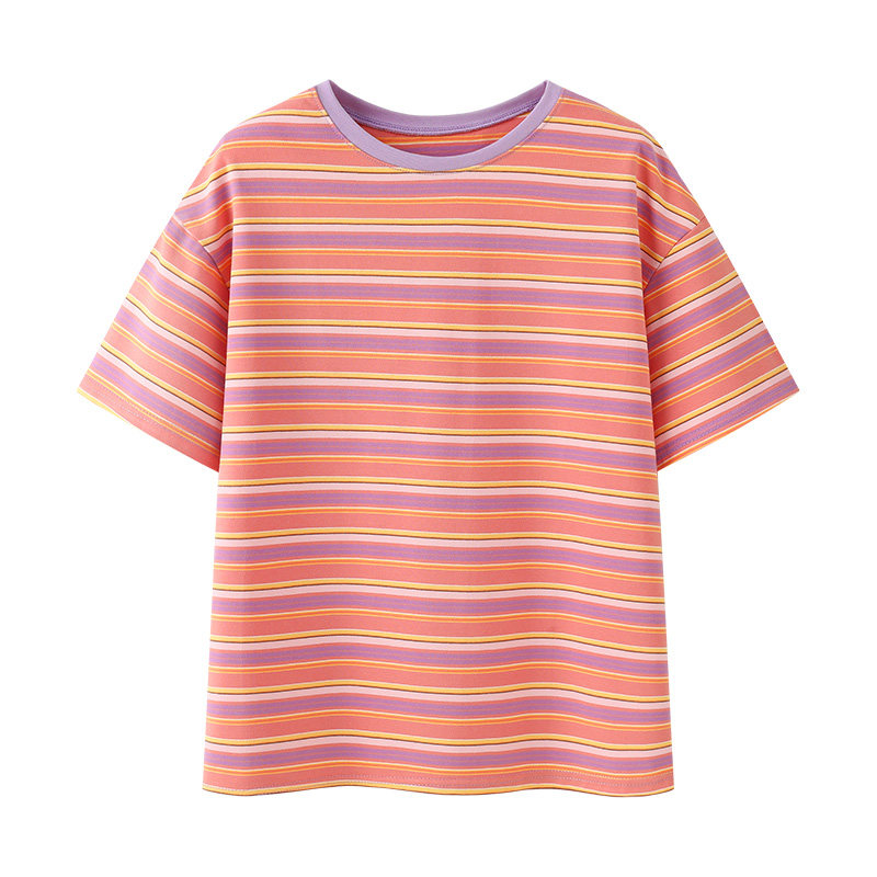 艾米恋 Летняя радужная хлопковая футболка для отдыха с круглым воротником, в корейском стиле, короткий рукав