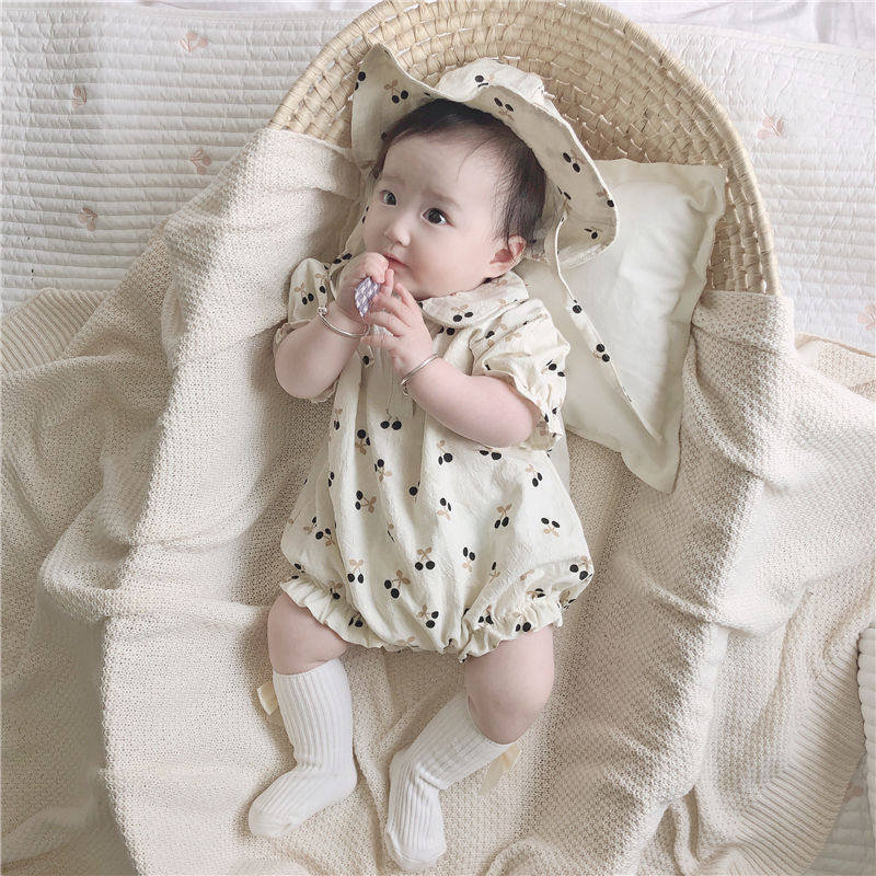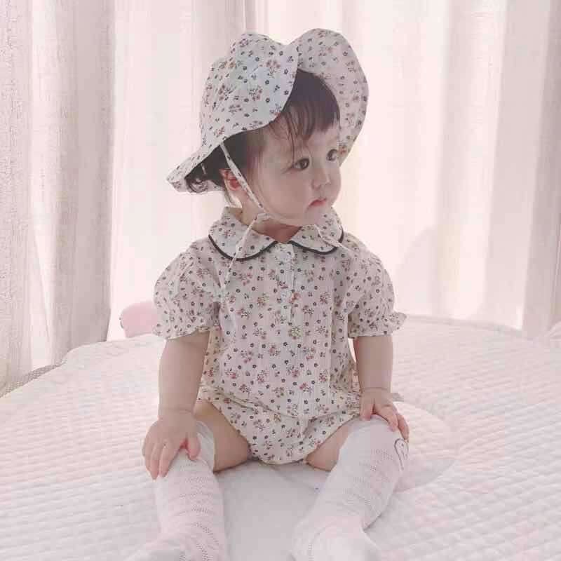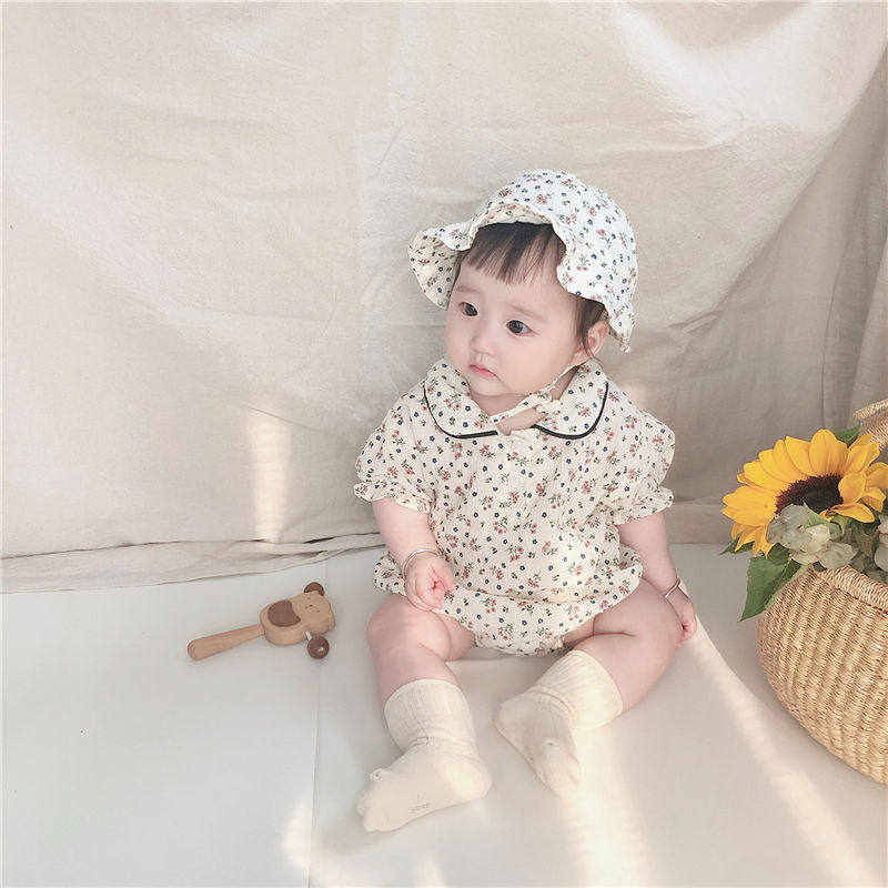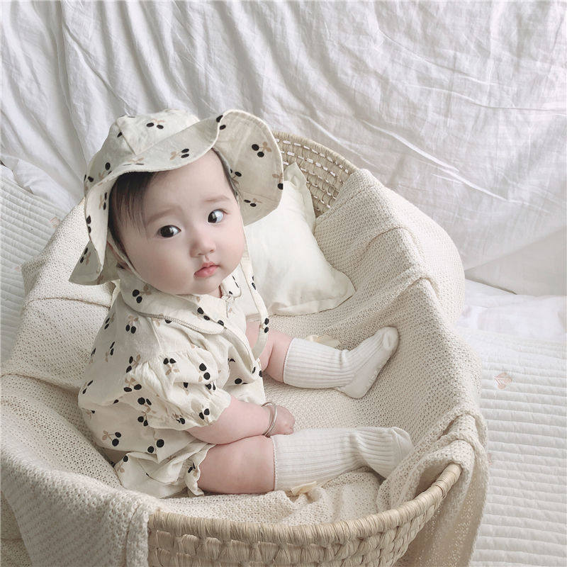 Детская летняя одежда для девочек, хлопковое боди, шапка, комплект, детская одежда