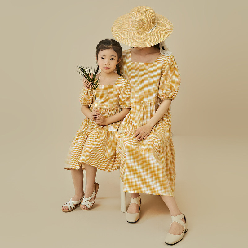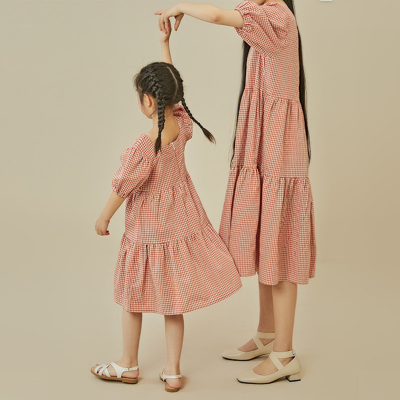 Детское хлопковое легкое и тонкое свежее платье, детская одежда, квадратный вырез, французский стиль, семейный стиль
