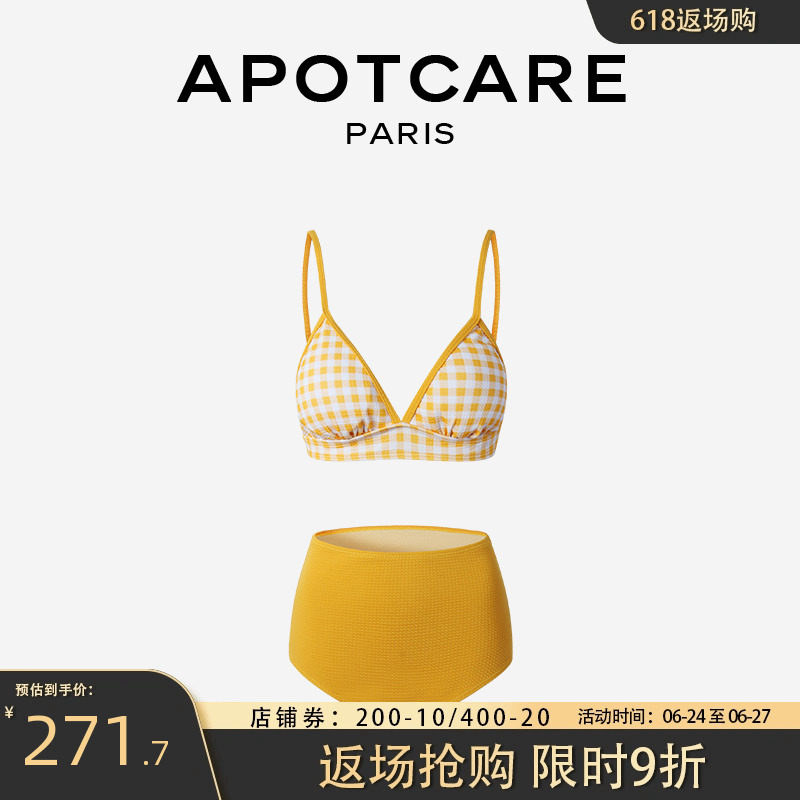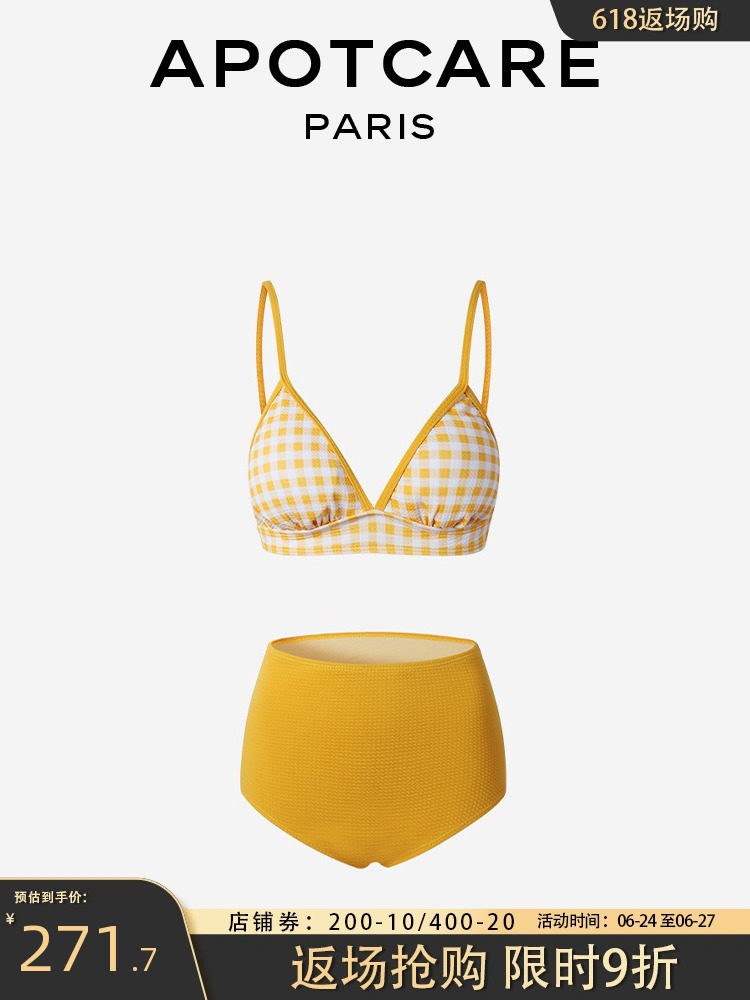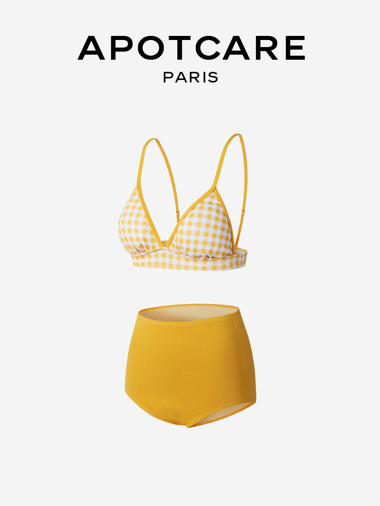 Желтый раздельный купальник, сексуальный комплект, Франция, высокая талия