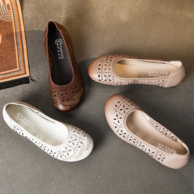Нескользящие комфортные сандалии для матери, летняя обувь для кожаной обуви, из натуральной кожи, для среднего возраста, мягкая подошва
