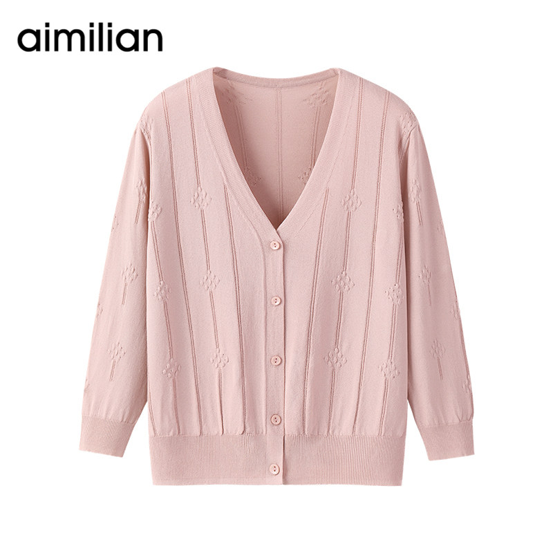 艾米恋 Трикотажный тонкий летний шелковый кардиган, розовая куртка