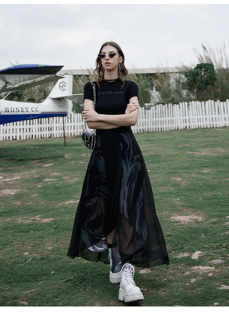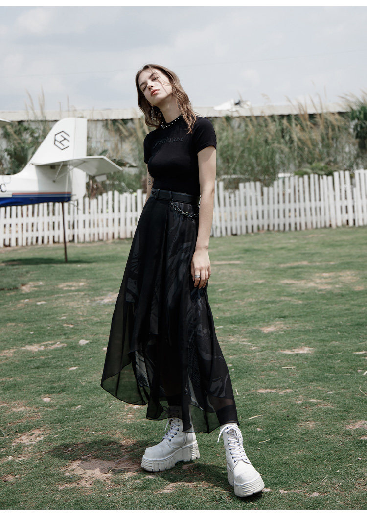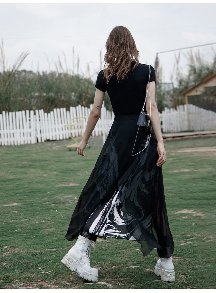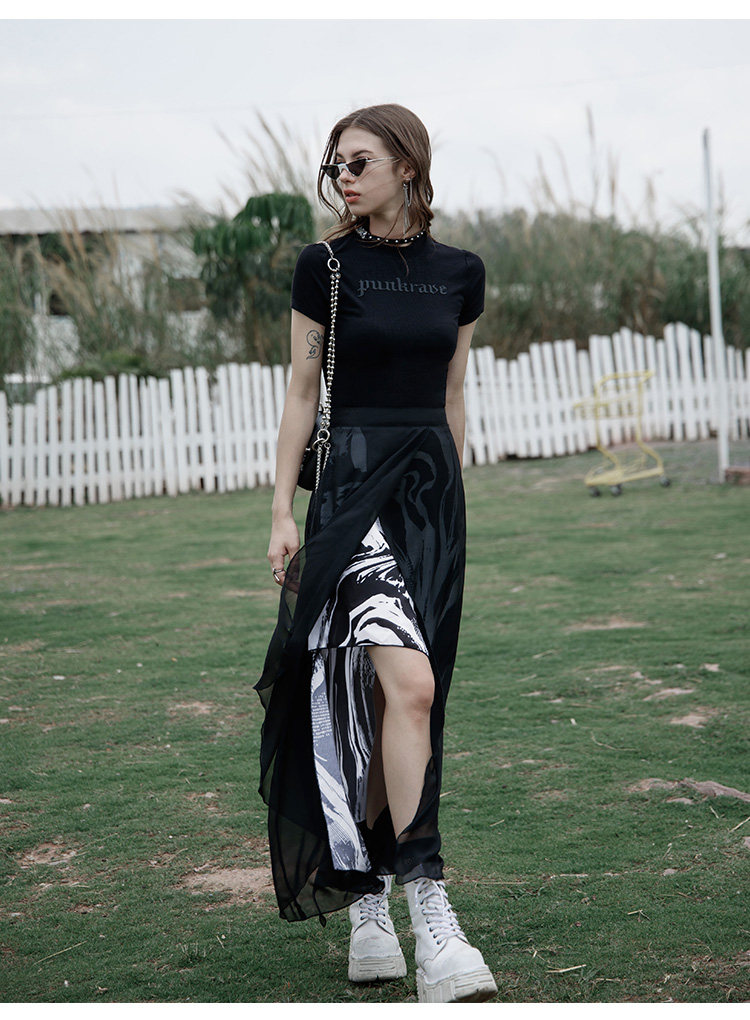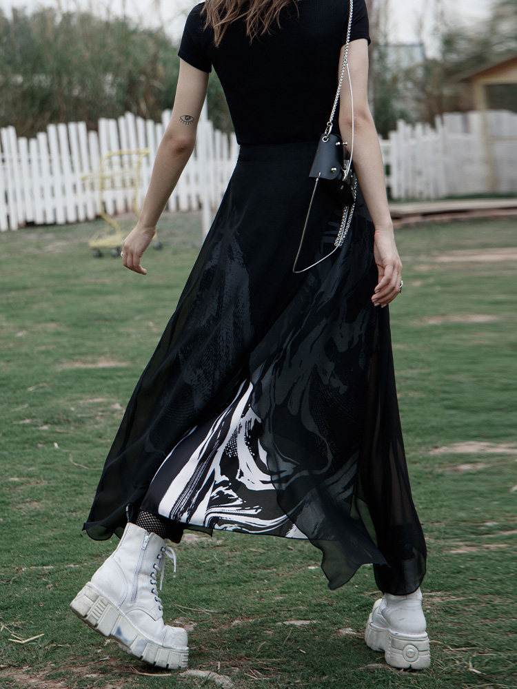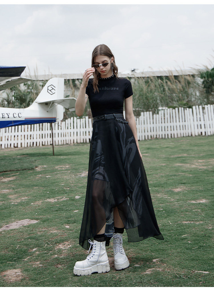PUNK RAVE Длинная черная осенняя тонкая шифоновая юбка, высокая талия, А-силуэт